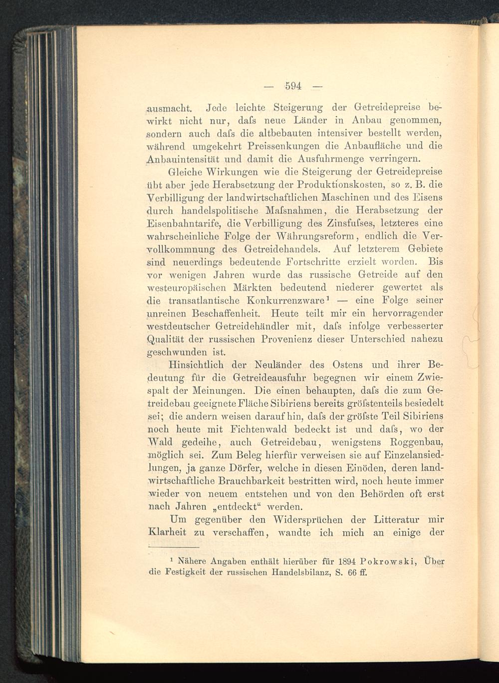 Gleiche Wirkungen wie die Steigerung der Getreidepreiseübt aber jede Herabsetzung der Produktionskosten, so z. B. dieVerbilligung der landwirtschaftlichen Maschinen und des Eisensdurch handelspolitische Mafsnahmen, die Herabsetzung derEisenbahntarife, die Verbilligung des Zinsfufses, letzteres einewahrscheinliche Folge der Währungsreform, endlich die Ver-vollkommnung des Getreidehandels. Auf letzterem Gebietesind neuerdings bedeutende Fortschritte erzielt worden. Bisvor wenigen Jahren wurde das russische Getreide auf denwesteuropäischen Märkten bedeutend niederer gewertet alsdie transatlantische Konkurrenzware 1 — eine Folge seinerunreinen Beschaffenheit. Heute teilt mir ein hervorragenderwestdeutscher Getreidehändler mit, dafs infolge verbesserterQualität der russischen Provenienz dieser Unterschied nahezugeschwunden ist.