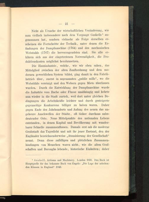 Nicht als Ursache der wirtschaftlichen Veränderung, wieman vielfach insbesondere nach dem Vorgange Gaskells 1 an-genommen hat, sondern vielmehr als Folge derselben er-scheinen die Fortschritte der Technik, unter denen die Er-findungen der Dampfmaschine (1764) und des mechanischenWebstuhls (1767) die hervorragendsten sind. Sie alle er-klären sich aus der eingetretenen Notwendigkeit, die Pro-duktionskosten möglichst herabzusetzen.