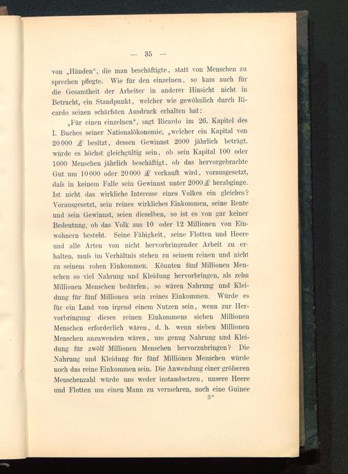 von „Händen ", die man beschäftigte, statt von Menschen zusprechen pflegte. Wie für den einzelnen, so kam auch fürdie Gesamtheit der Arbeiter in anderer Hinsicht nicht inBetracht, ein Standpunkt, welcher wie gewöhnlich durch Ri-cardo seinen schärfsten Ausdruck erhalten hat:
