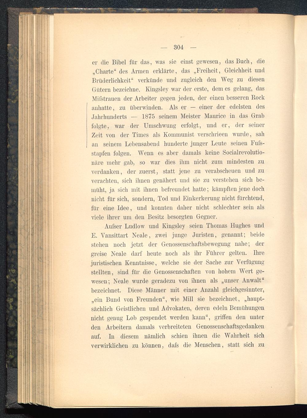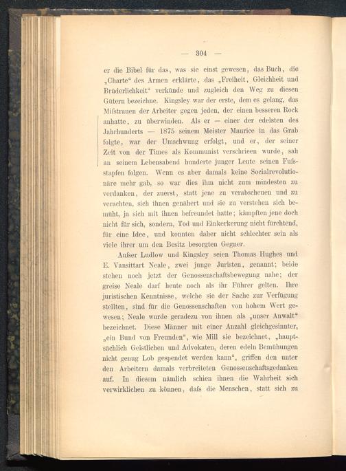 er die Bibel für das, was sie einst gewesen, das Buch, die„Charte" des Armen erklärte, das „Freiheit, Gleichheit undBrüderlichkeit" verkünde und zugleich den Weg zu diesenG ütern bezeichne. Kingsley war der erste, dem es gelang, dasMifstrauen der Arbeiter gegen jeden, der einen besseren Rockanhatte, zu überwinden. Als er — einer der edelsten desJahrhunderts — 1875 seinem Meister Maurice in das Grabfolgte, war der Umschwung erfolgt, und er, der seinerZeit von der Times als Kommunist verschrieen wurde, sahan seinem Lebensabend hunderte junger Leute seinen Fufs-stapfen folgen. Wenn es aber damals keine Socialrevolutio-näre mehr gab, so war dies ihm nicht zum mindesten zuverdanken, der zuerst, statt jene zu verabscheuen und zuverachten, sich ihnen genähert und sie zu verstehen sich be-müht, ja sich mit ihnen befreundet hatte; kämpften jene dochnicht für sich, sondern, Tod und Einkerkerung nicht fürchtend,für eine Idee, und konnten daher nicht schlechter sein alsviele ihrer um den Besitz besorgten Gegner.