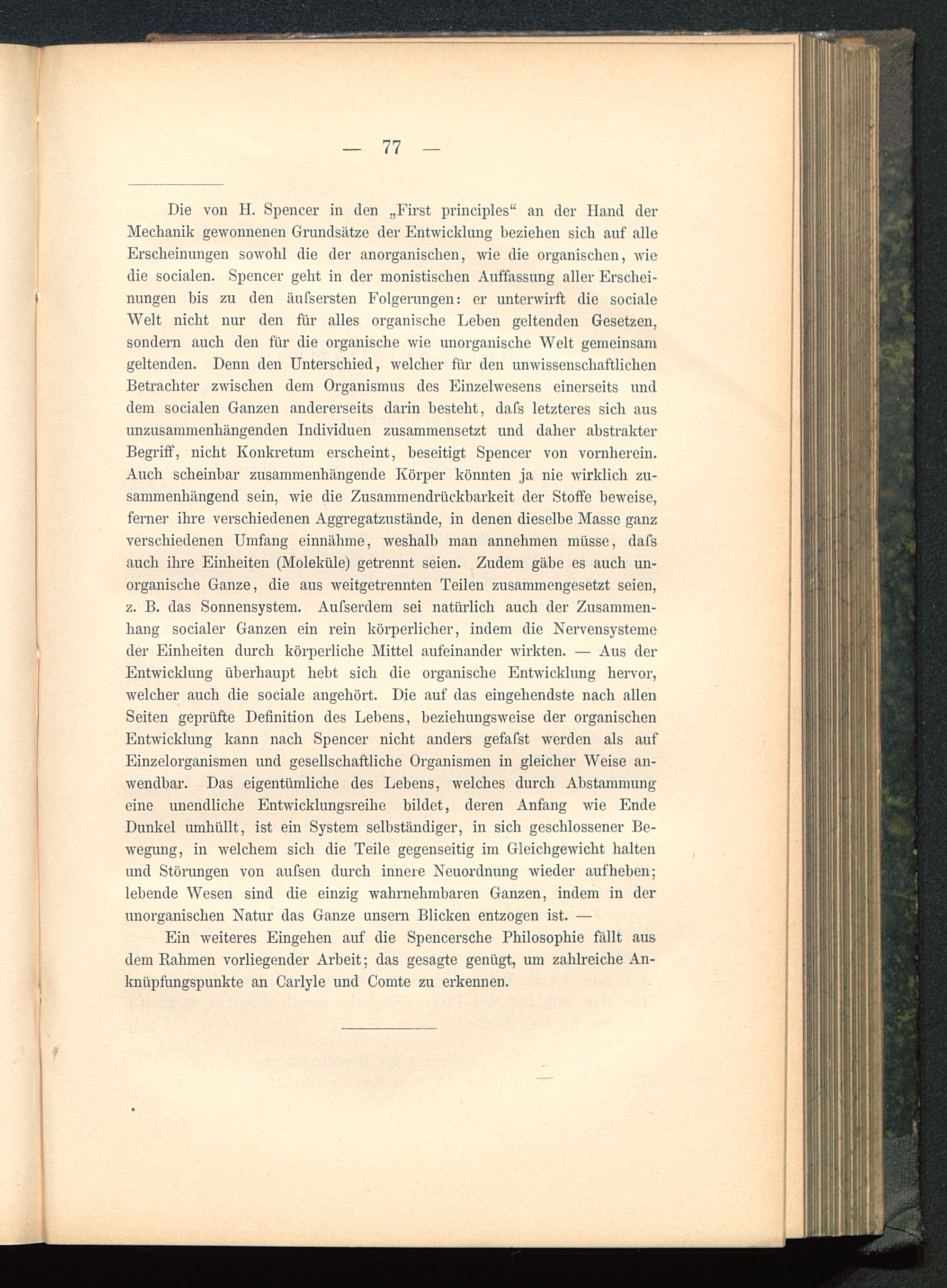 Ein weiteres Eingehen auf die Spencersche Philosophie fällt ausdem Rahmen vorliegender Arbeit; das gesagte genügt, um zahlreiche An-knüpfungspunkte an Carlyle und Comte zu erkennen.
