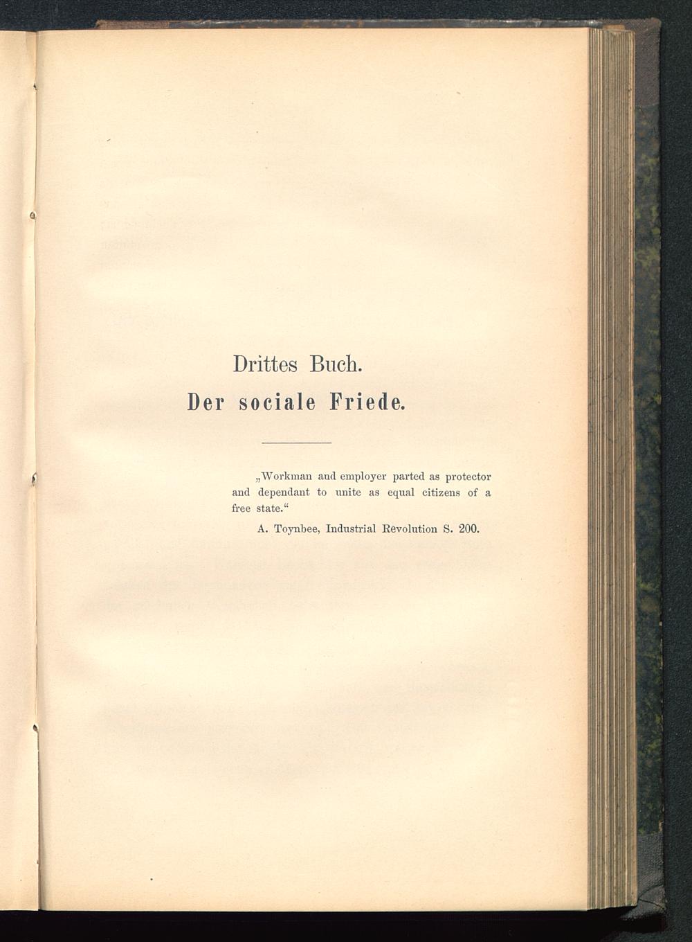 Drittes Buch.Der sociale Friede.„Workman and employer parted as protectorand dependant to unite as equal Citizens of afree State."A. Toynbee , Industrial Revolution S. '200.