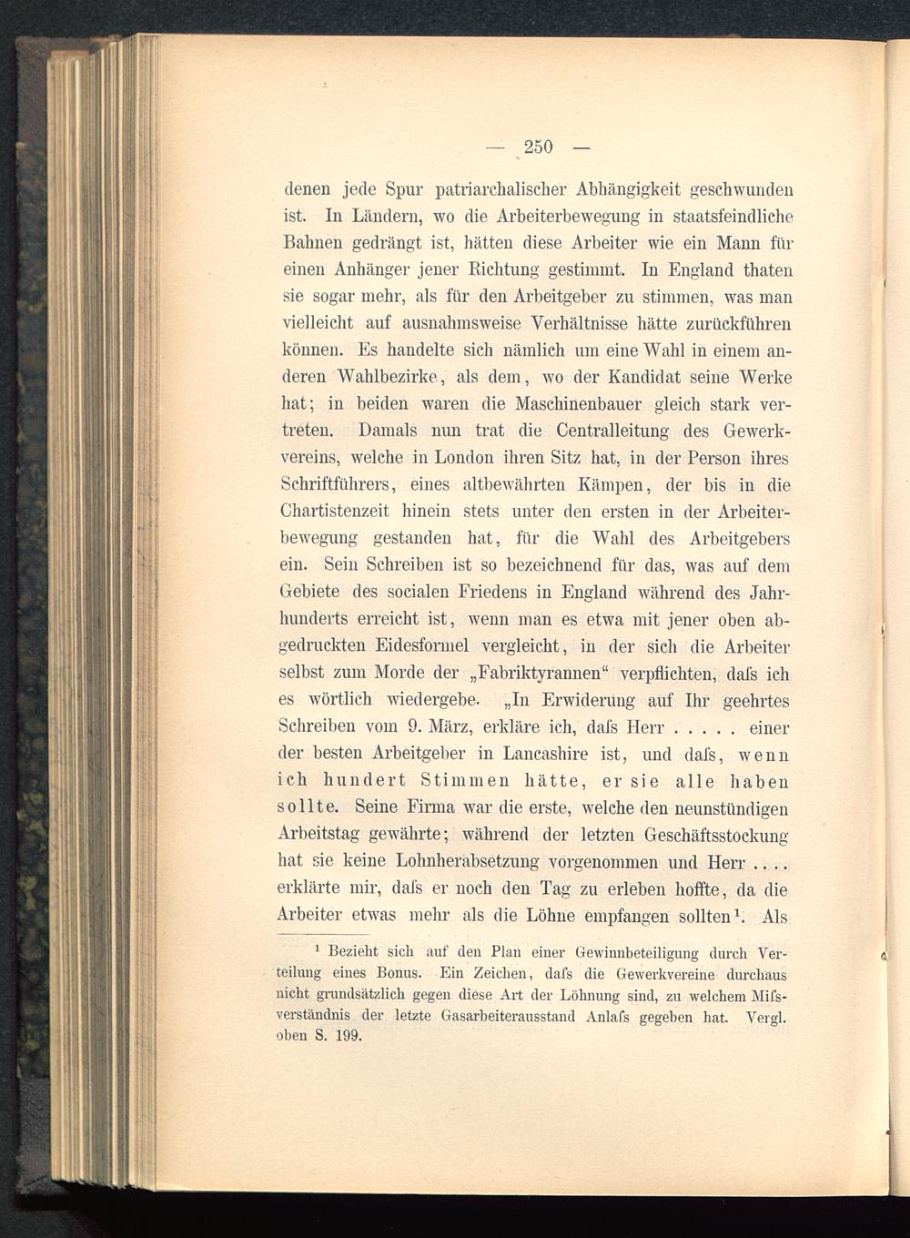 1 Bezieht sich auf den Plan einer Gewinnbeteiligung durch Ver-teilung eines Bonus. Ein Zeichen, dafs die Gewerkvereine durchausnicht grundsätzlich gegen diese Art der Löhnung sind, zu welchem Mifs-verständnis der letzte Gasarbeiterausstand Anlafs gegeben hat. Vergl.oben S. 199.