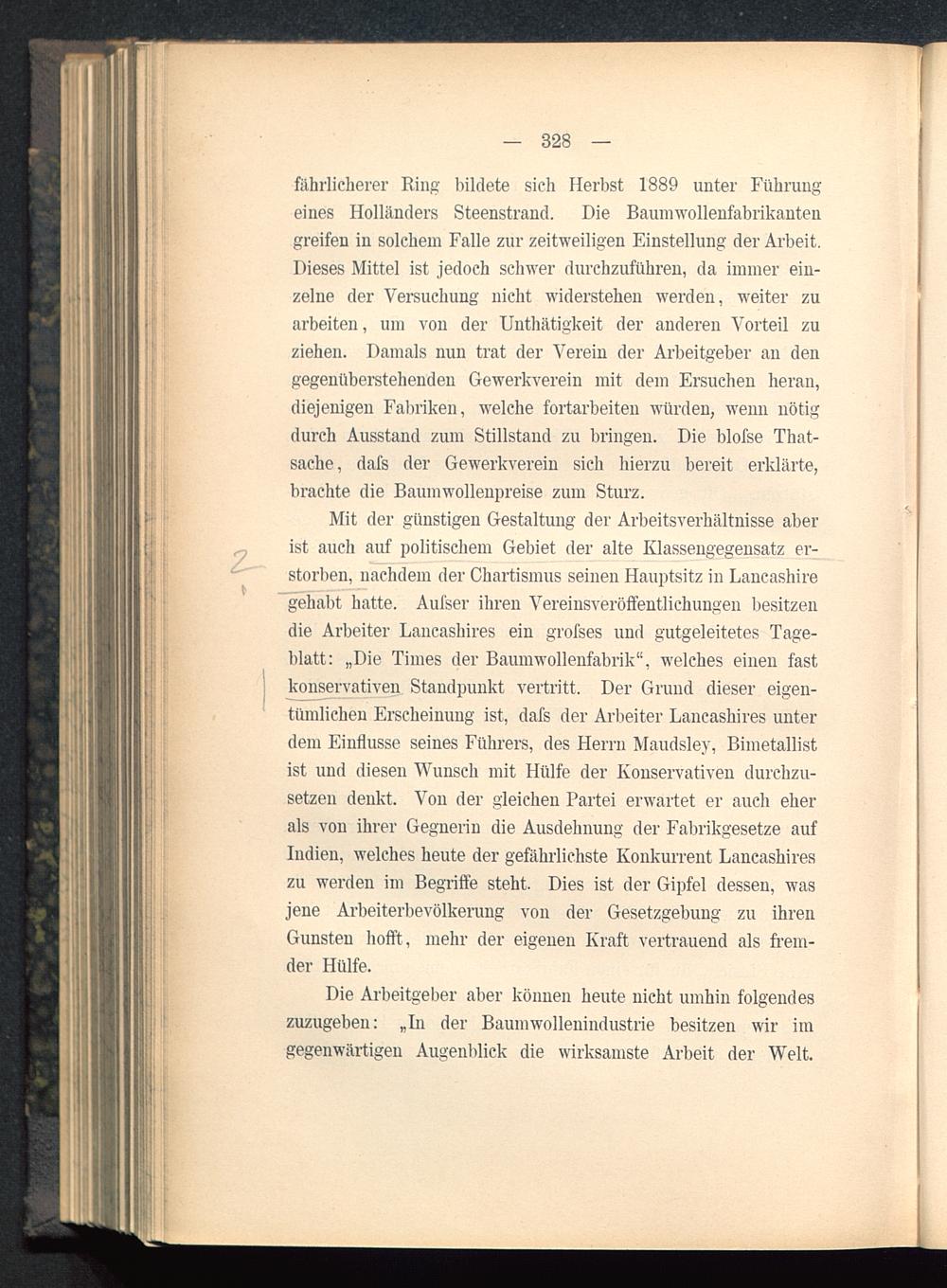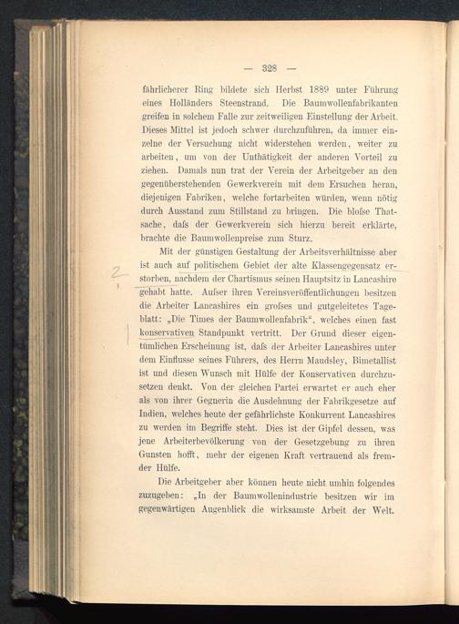Die Arbeitgeber aber können heute nicht umhin folgendeszuzugeben: „In der Baumwollenindustrie besitzen wir imgegenwärtigen Augenblick die wirksamste Arbeit der Welt.