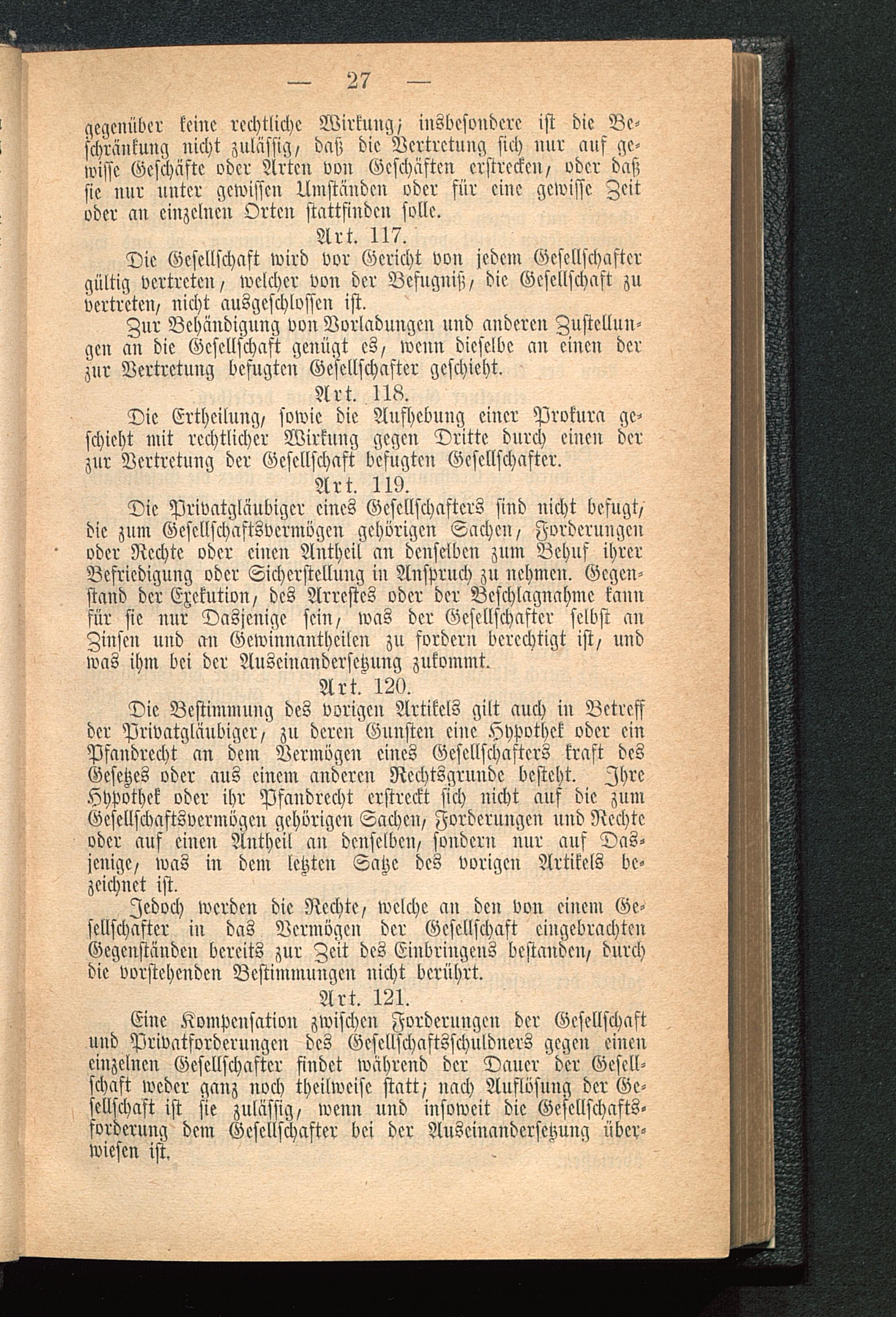 Die Gesellschaft wird bor Gericht von jedem Gesellschaftergültig vertreten/ welcher von der Befugnis;/ die Gesellschaft zuvertreten/ nicht ausgeschlossen ist.