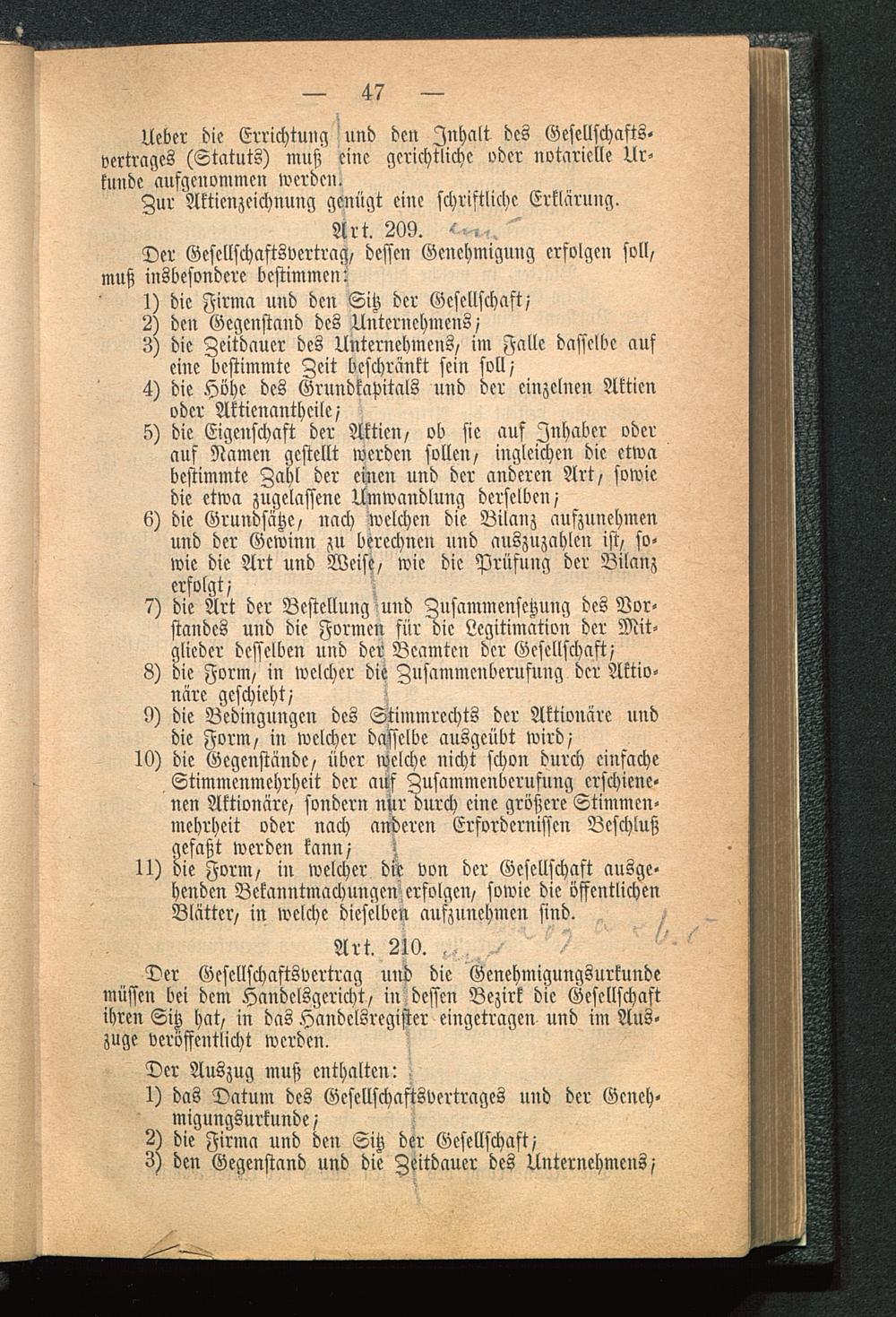 Der Gesellschaftsvertrag und die Genehmigungsurkundemüssen bei dem Handelsgericht, in dessen Bezirk die Gesellschaftihren Sitz hat, in das Handelsregister eingetragen und im Aus-zuge veröffentlicht werden.