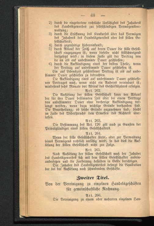 5) durch Ablauf der Zeith auf deren Dauer die stille Gesell-schaft eingegangen ist/ wenn dieselbe nicht stillschweigendfortgesetzt wird/ in diesem Falle gilt der Vertrag vonda an als auf unbestimmte Dauer geschlossen/