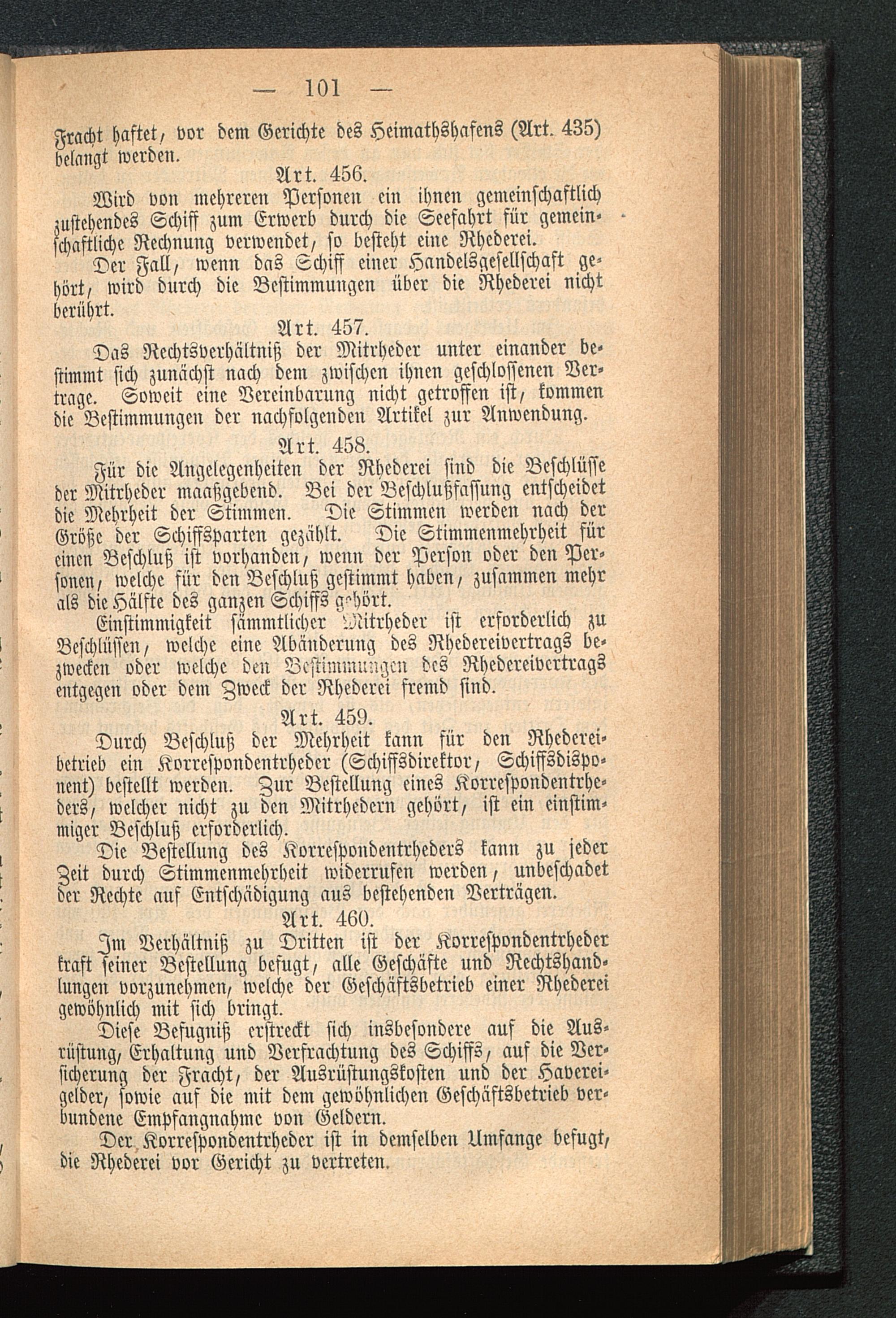 Für die Angelegenheiten der Rhcderei sind die Beschlüsseder Mitrheder maaßgebend. Bei der Beschlußfassung entscheidetdie Mehrheit der Stimmen. Die Stimmen werden nach derGröße der Schiffsparten gezählt. Die Stimmenmehrheit füreinen Beschluß ist vorhanden, wenn der Person oder den Per-sonen, welche für den Beschluß gestimmt haben, zusammen mehrals die Hälfte des ganzen Schiffs gehört.