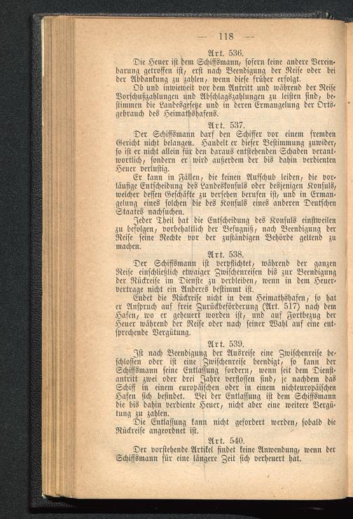 Die Heuer ist dem Schiffsmann, sofern keine andere Verein-barn»^ getroffen ist/ erst nach Beendigung der Reise oder beider Abdankung zu zahlen/ wenn diese früher erfolgt.
