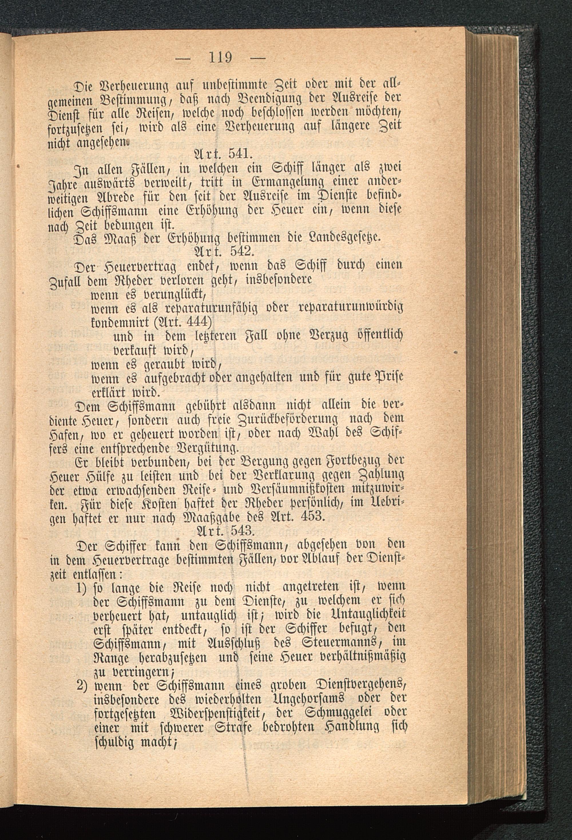 In allen Fallen/ in welchen ein Schiff länger als zweiFahre auswärts verweilt/ tritt in Ermangelung einer ander-weitigen Abrede für den seit der Ausreise im Dienste befind-lichen Schisssmann eine Erhöhung der Heuer ein/ wenn diesenach Zeit bedungen ist.