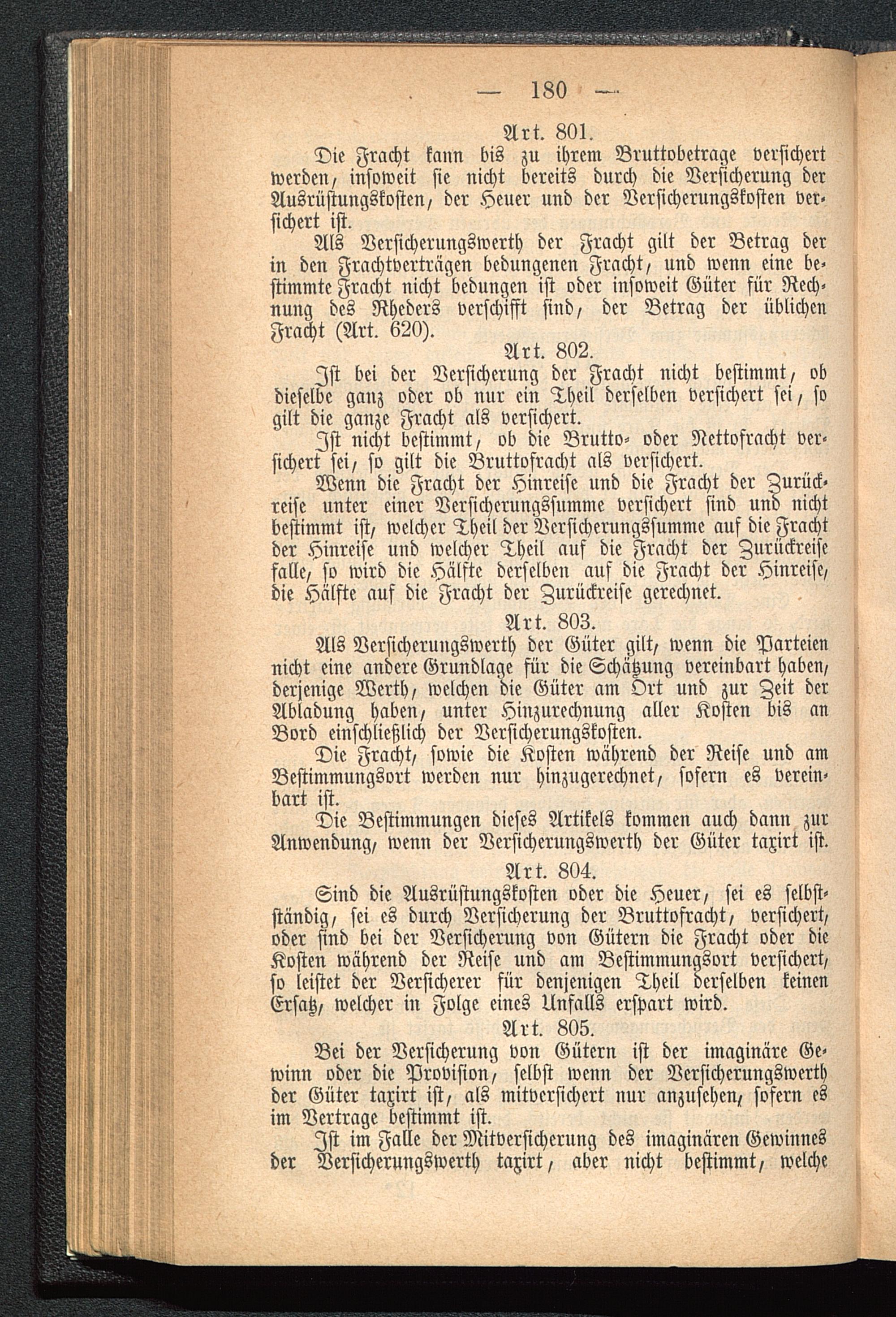 Bei der Versicherung von Gütern ist der imaginäre Ge-winn oder die Provision, selbst wenn der Versicherungswerthder Güter taxirt ist, als mitversichcrt nur anzusehen, sofern esim Vertrage bestimmt ist.