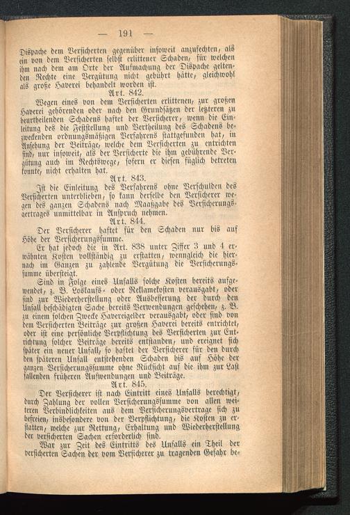 Wegen eines von dem Versicherten erlittenen/ zur großenHaverei gehörenden oder nach den Grundsäßen der letzteren zubeurtheilenden Schadens haftet der Versicherer/ wenn die Ein-leitung des die Feststellung und Vertheilung des Schadens be-zweckenden ordnungsmäßigen Verfahrens stattgefunden hat/ inAnsehung der Beiträge/ welche dem Versicherten zu entrichtensind, nur insoweit, als der Versicherte die ihm gebührende Ver-gütung auch im Rechtswege, sofern er diesen füglich betretenkonnte, nicht erhalten hat.