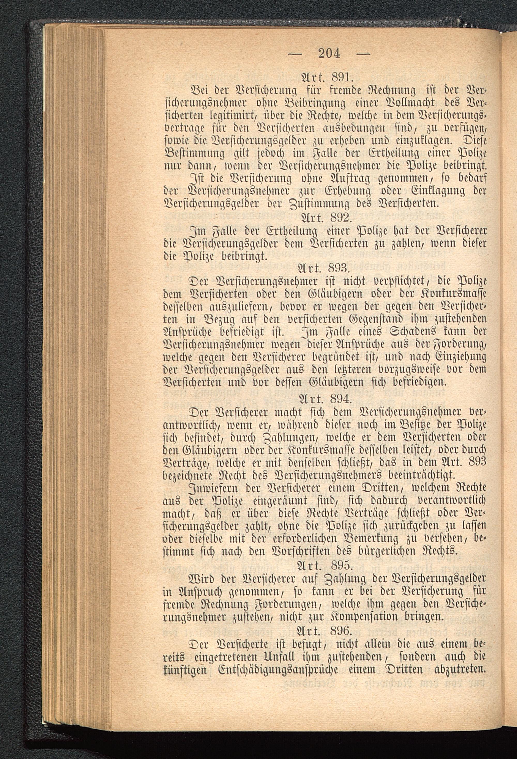 Der Versicherer macht sich dem Versicherungsnehmer ver-antwortlich, wenn er, während dieser noch im Besitze der Polizesich befindet, durch Zahlungen, welche er dem Versicherten oderden Gläubigern oder der Konkursmasse desselben leistet, oder durchVerträge, welche er mit denselben schließt, das in dem Art. 893bezeichnete Recht des Versicherungsnehmers beeinträchtigt.