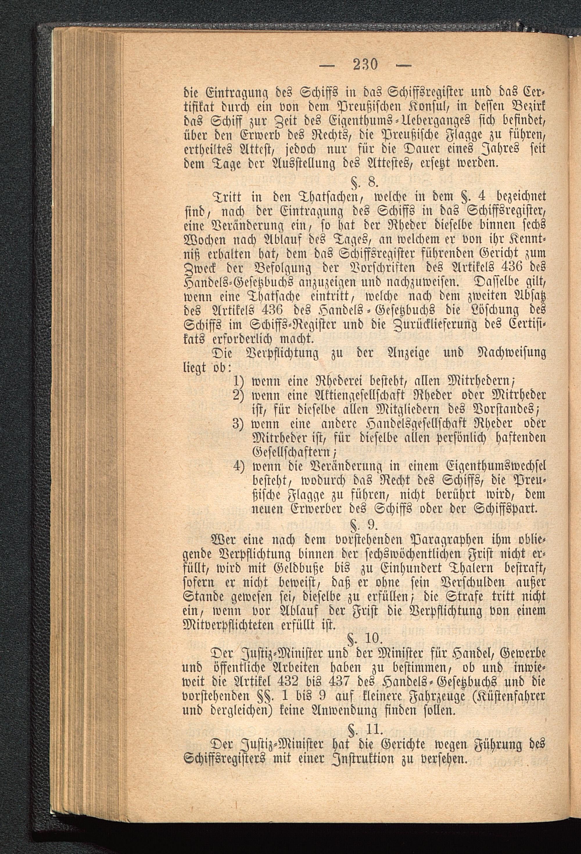 Der Justiz-Minister hat die Gerichte wegen Führung desSchiffsregisters mit einer Instruktion zu versehen.