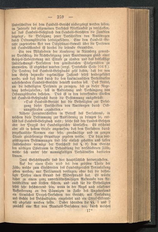 Unterschriften bei dem Handcls-Gcricht niedergelegt werden sollen,im Interesse des allgemeinen Verkehrs Wirksamkeit zu verschaffen,hat das Handels-Gesctzbuch den Handels-Gerichten die Funktionbeigelegt, die Befolgung jener Vorschriften von Amtswcgendurch Ordnungsstrafen herbeizuführen. Eine dem Handels Ge-richt zugewiesene Art von Disziplinar-Gewalt über die Personendes Handelsstandes ist hierbei die leitende Grundidee.