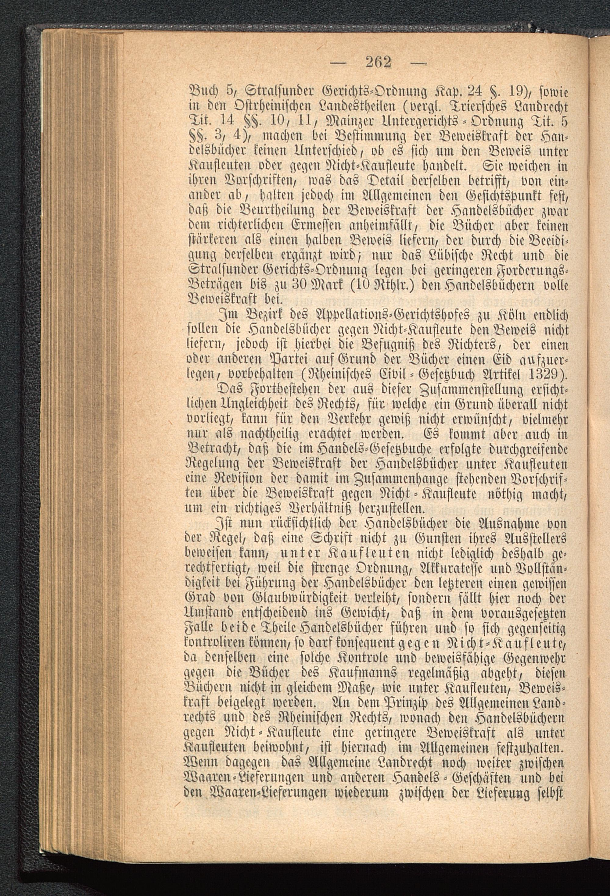Buch 5/ Stralsunder Gcrichts-Ordnung Kap. 24 §. 19), sowieiu den Ostrheinischeu Landestheilen (vergl. Tricrsches LandrechtTit. 14 §§. 19, 11, Mainzer Untergewichts - Ordnung Tit. 5§§. 3, 4), inachen dci Bestiimnung der Beweiskraft der .Han-delsbücher keinen Unterschied, od es sich uin den Beweis unterKaufleuten oder gegen Nicht-Kaufleute handelt. Sie weichen inihren Vorschriften, was das Detail derselden detriflt, von ein-ander ad, halten jedoch im Allgemeinen den Gesichtspunkt fest,daß die Beurtheilung der Beweiskraft der Handelsbücher zwardem richterlichen Ermessen anheimfällt, die Bücher aber keinenstärkeren als einen halben Beweis liefern, der durch die Beeidi-gung derselben ergänzt wird/ nur das Lübische Recht und diestralsunder Gerichts-Ordnung legen bei geringeren Fordcrungs-Bcträgen bis zu 39 Mark (19 Rthlr.) den Handclsbüchern volleBeweiskraft bei.