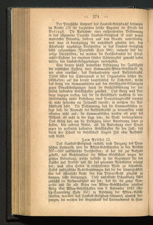 Das Handels-Gcsctzbuch enthält, nach Vorgang des Preu-ßischen Entwurfs, über die Aktien-Gesellschaften in f>en Artikeln207—249 ausführliche Vorschriften/ es hat sich zur Aufgabegestellt, das Rechtsinstitut der Aktien-Gesellschaft wegen dergroßen Bedeutung, welche dasselbe in der Gegenwart für denHandel und Verkehr und für das gesammte Rechtslebcn erlangthat, nach allen Seiten in erschöpfender Weise zu behandeln.Selbst publizistische Rechtsbcziehungen sind bei der Unmöglichkeit,hier das öffentliche Recht von dem Privat-Recht gänzlich zutrennen, nicht Übergängen. Diese umfassende Behandlung führtzunächst die Nothwendigkeit mit sich, das für die ganze Mon-archie und für alle Arten von Aktien-Gesellschaften erlasseneGesetz über Aktien-Gesellschaften vom 9. November 1843 (Ge-setz-Sammlung Seite 341) in Ansehung der Aktien-Gesell-schaften, worüber das Handels-Gesetzbuch disponirt, nämlich der-jenigen/ bei weichen der Gegenstand des Unternehmens in Han-