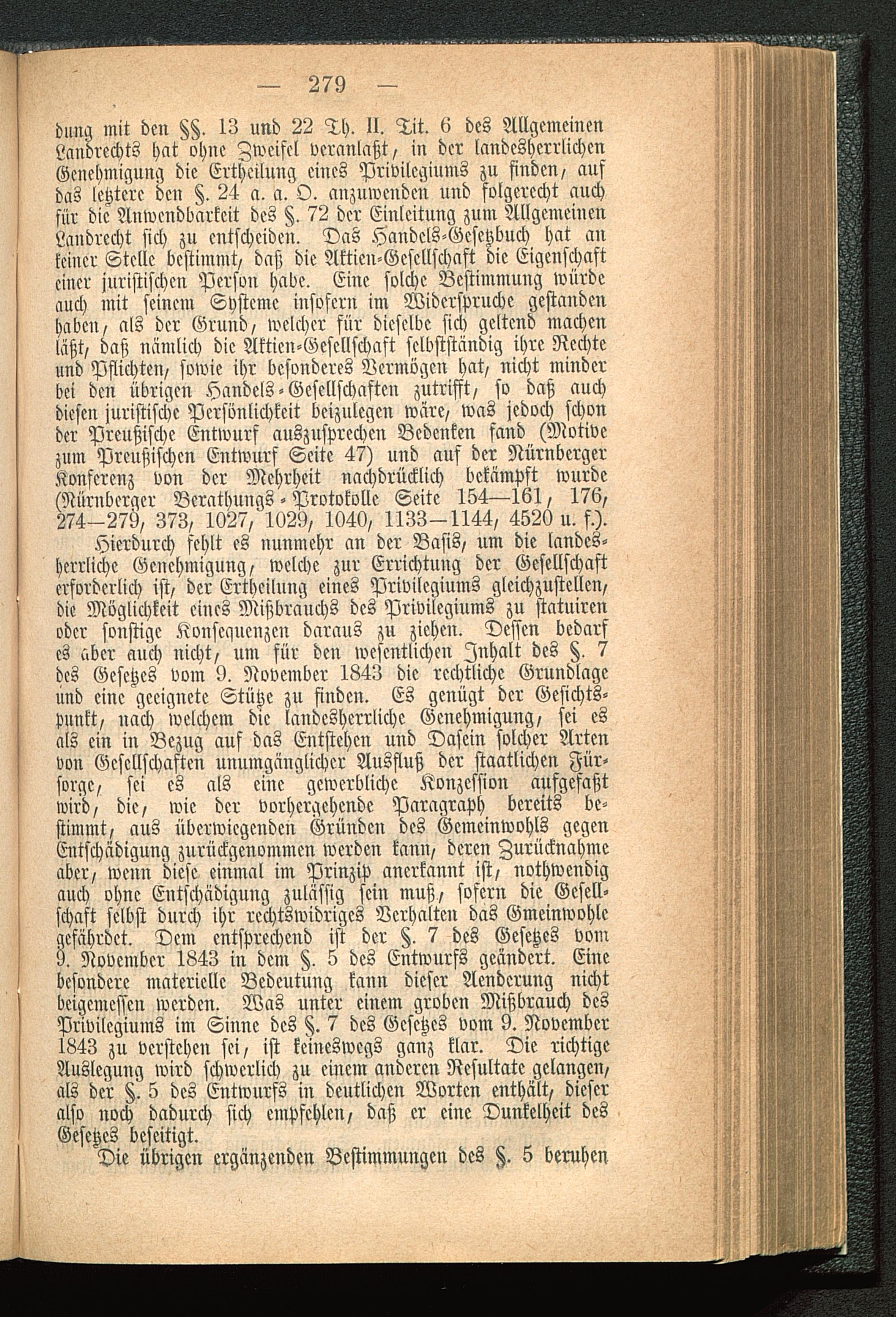 dung mit den §§. 13 und 22 Th. II. Tit. 6 des AllgemeinenLandrechts hat ohne Zweifel veranlaßt, in der landesherrlichenGenehmigung die Ertheilung eines Privilegiums zu finden, aufdas letztere den §. 24 a. a. O. anzuwenden und folgerecht auchfür die Anwendbarkeit des §. 72 der Einleitung zum AllgemeinenLandrccht sich zu entscheiden. Das Handcls-Gesetzbuch hat aukeiner Stelle bestimmt, daß die Aktien-Gesellschaft die Eigenschafteiner juristischen Person habe. Eine solche Bestimmung würdeauch mit seinem Shsteme insofern im Widersprüche gestandenhaben, als der Grund, welcher für dieselbe sich geltend machenläßt, daß nämlich die Aktien-Gesellschaft sclbstständig ihre Rechteund Pflichten, sowie ihr besonderes Vermögen hat, nicht minderbei den übrigen Handels-Gesellschaften zutrifft, so daß auchdiesen juristische Persönlichkeit beizulegen wäre, was jedoch schonder Preußische Entwurf auszusprechen Bedenken fand (Motivezum Preußischen Entwurf Seite 47) und aus der NürnbergerKonferenz von der Mehrheit nachdrücklich bekämpft wurde(Nürnberger Berathungs - Protokolle Seite 154—161, 176,274- 279, 373, 1027/1029, 1040, 1133-1144, 4520 u. f.).
