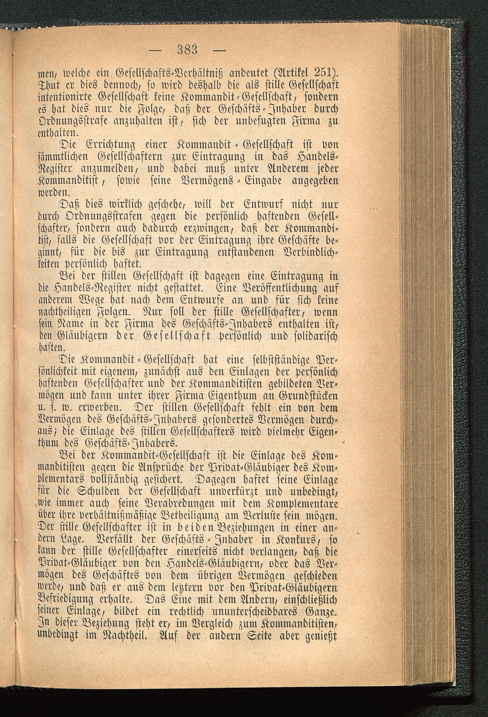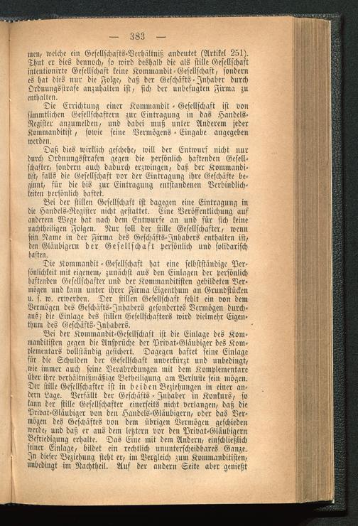 wen, welche cm Gescllschafts-Verhältniß andeutet (Artikel 251).Thut er dies dennoch/ so wird deshalb die als stille Gesellschaftintentionirte Gesellschaft keine Kommandit-Gesellschaft / sondernes hat dies nur die Folge/ daß der Geschäfts-Inhaber durchOrdnungsstrafe anzuhalten ist/ sich der unbefugten Firma zuenthalten.