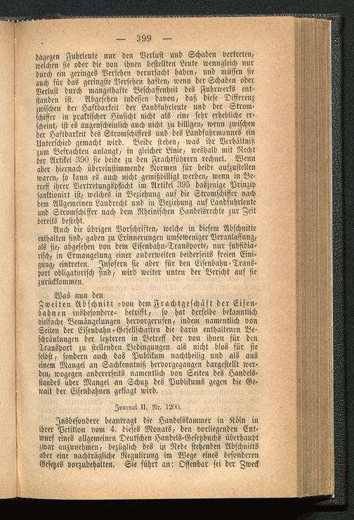 Auch die übrigen Vorschriften, welche in diesem Abschnitteenthalten sind, gaben zu Erinnerungen umsoweniger Veranlassung,als sie, abgesehen von dem Eisenbahn-Transporte, nur subsidia-risch, in Ermangelung einer andcrweitcn beiderseits freien Eini-gung, eintreten. Insofern sie aber für den Eisenbahn-Trans-port obligatorisch sind, wird weiter unten der Bericht auf siezurückkommen.