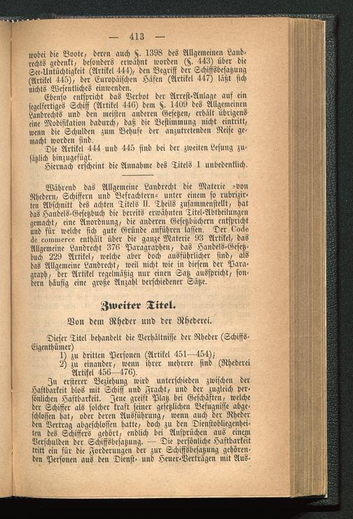 wobei die Boote, deren auch 1398 des Allgemeinen Land-rechts gedenkt, besonders erwähnt worden (§. 443) über dieSee-Untüchtigkeit (Artikel 444), den Begriff der Schiffsbesatzung(Artikel 445), der Europäischen Häfen (Artikel 447) läßt sichnichts Wesentliches einwenden.
