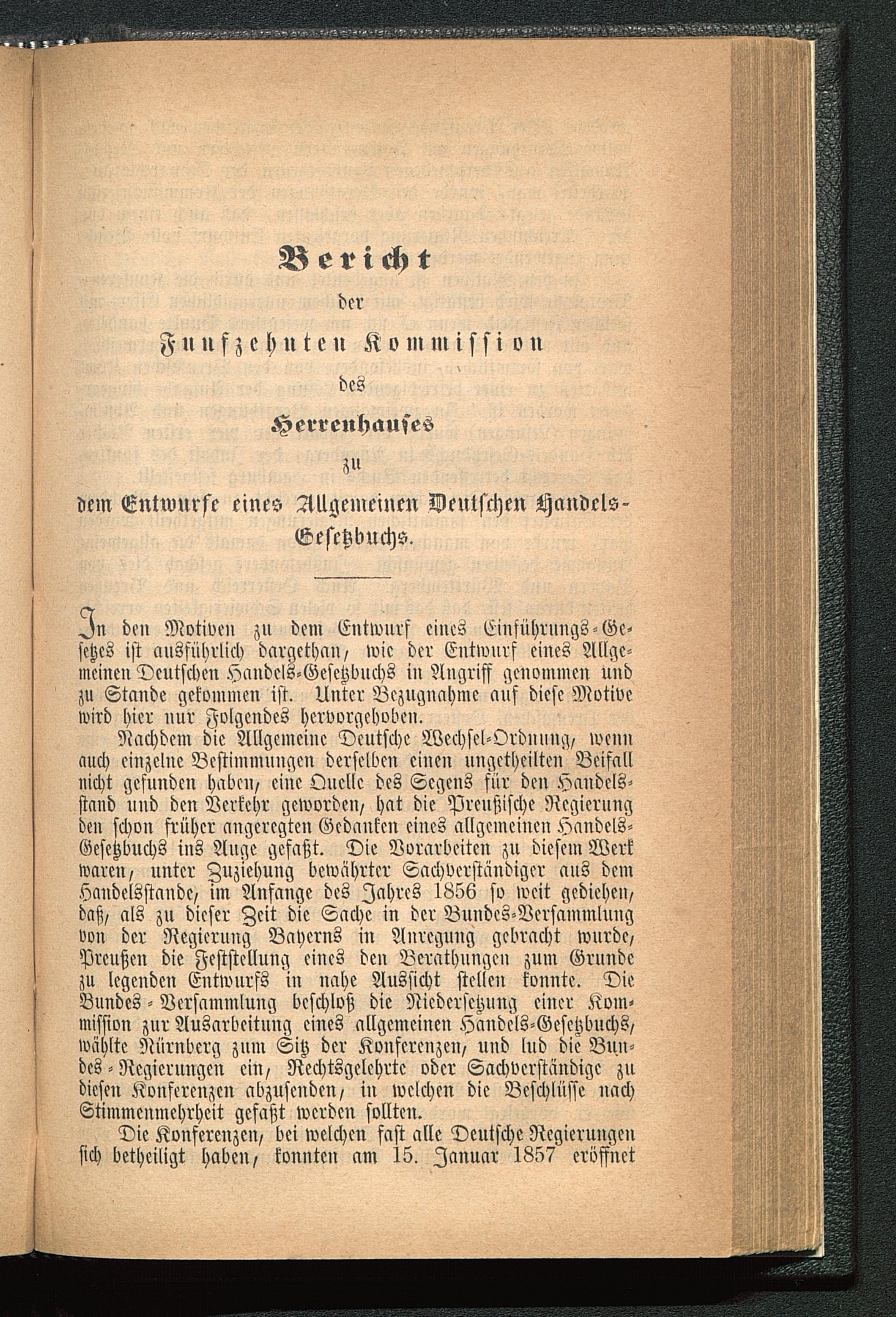Nachdem die Allgemeine Deutsche Wechsel-Ordnung/ wennauch einzelne Bestimmungen derselben einen ungctheilten Beifallnicht gefunden haben, eine Quelle des Segens für den Handels-staud und den Verkehr geworden, hat die Preußische Regierungden schon früher angeregten Gedanken eines allgemeinen Handels-Gesetzbuchs ins Auge gefaßt. Die Vorarbeiten zu diesem Werkwaren, unter Zuziehung bewährter Sachverständiger aus demHandelsstande, im Anfange des Jahres 1856 so weit gediehen,daß, als zu dieser Zeit die Sache in der Bundcs-Vcrsanimlungvon der Regierung Bahcrns in Anregung gebracht wurde,Preußen die Feststellung eines den Berathungen zum Grundezu legenden Entwurfs in nahe Aussicht stellen konnte. DieBundes - Versammlung beschloß die Niedcrsetzuug einer Kom-mission zur Ausarbeitung eines allgemeinen Handels-Gesetzbuchs,wählte Nürnberg zum Sitz der Konferenzen, und lud die Bun-des - Regierungen ein, Nechtsgelchrtc oder Sachverständige zudiesen Konferenzen abzusenden, in welchen die Beschlüsse nachStimmenmehrheit gefaßt werden sollten.