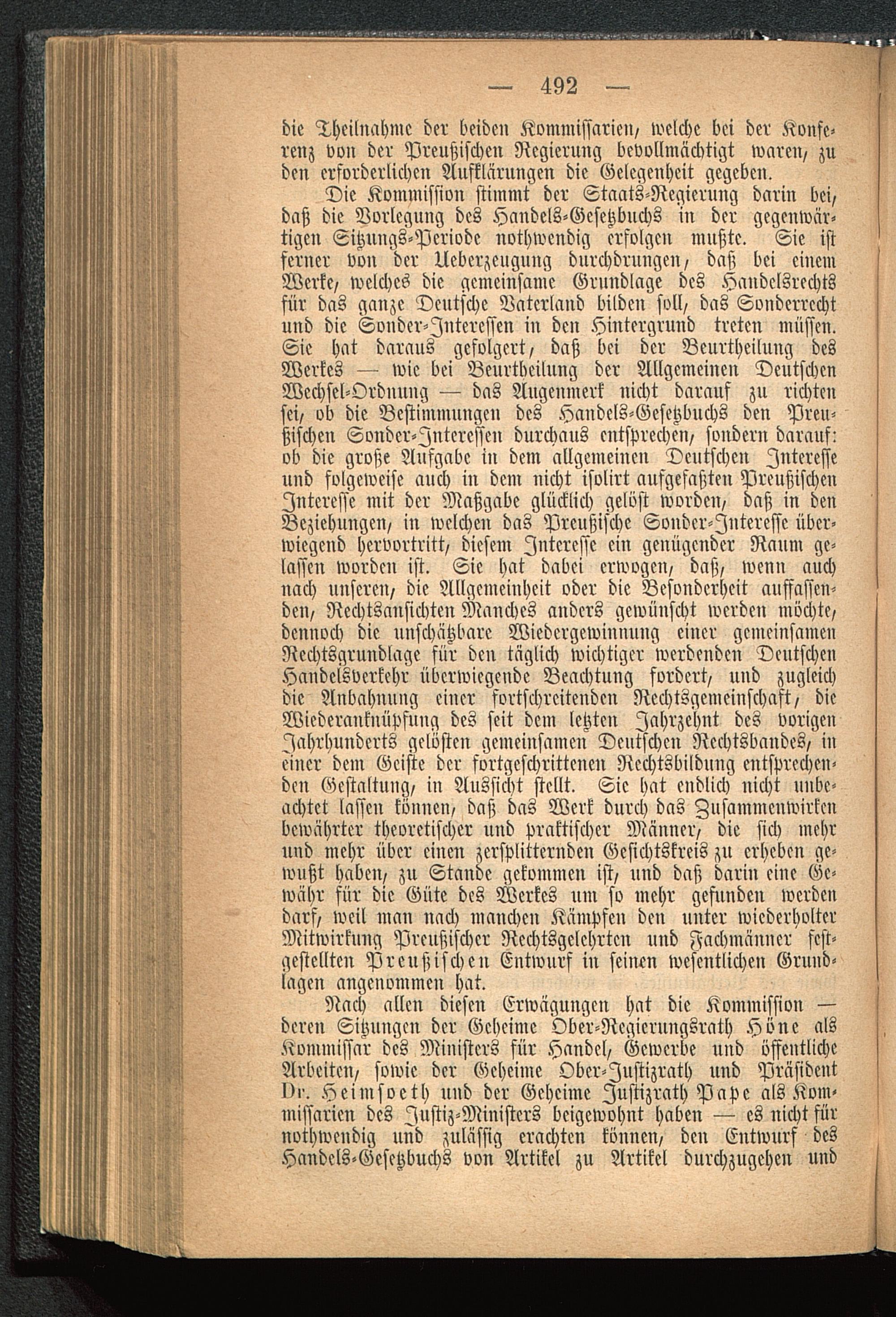 Nach allen diesen Erwägungen hat die Kommission —de ren Sitzungen der Geheime Ober-Regicrungsrath Höne alsKommissar des Ministers für Handel, Gewerbe und öffentlicheArbeiten, sowie der Geheime Ober-Iustizrath und PräsidentDr. Heimsoeth und der Geheime Iustizrath Papc als Kom-missarie» des Justiz-Ministers beigewohnt haben — es nicht fürnothwendig und zulässig erachten können, den Entwurf desHandels-Gesetzbuchs von Artikel zu Artikel durchzugehen und