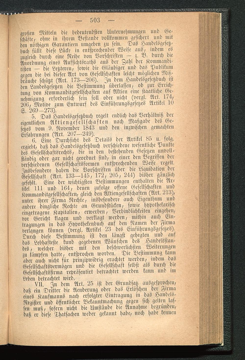 5. Das Handelsgesetzbuch regelt endlich das Verhältniß dereigentlichen Aktiengesellschaften nach Maßgabe des Ge-setzes vom 9. November 1843 und den inzwischen gemachtenErfahrungen (Art. 207—249).