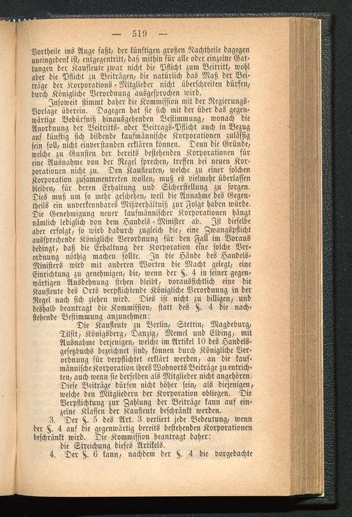 Vortheile ins Auge faßt, der künftigen großen Nachtheile dagegenuneingedenk ist, entgegentritt, daß mithin für alle oder einzelne Gat-tungen der Kaufleute zwar uicht die Pflicht zum Beitritt, wohlaber die Pflicht zu Beitragen, die natürlich das Maß der Bei-trüge der Korporativns - Mitglieder nicht überschreiten dürfen,durch Königliche Verordnung ausgesprochen wird.