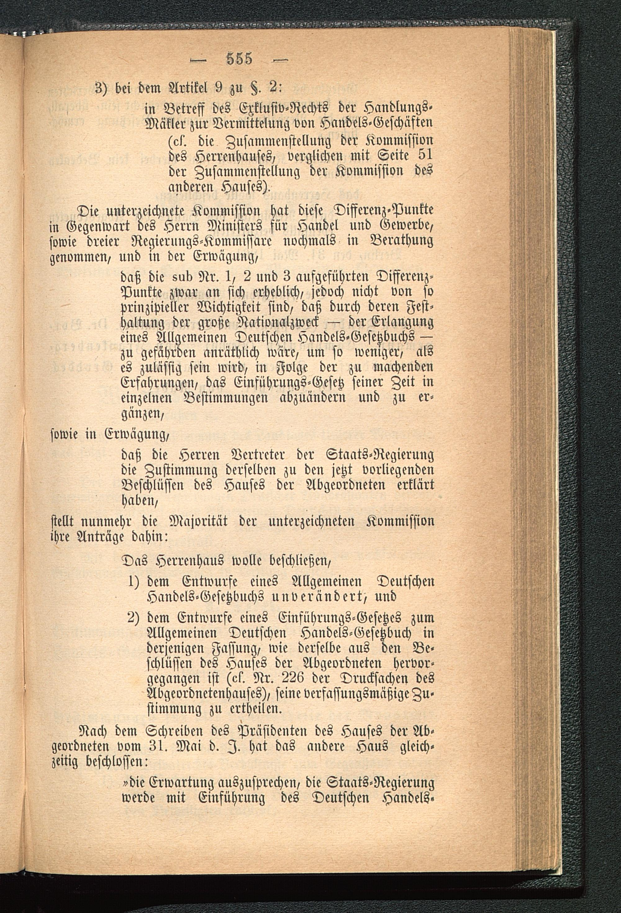 Die unterzeichnete Kommission hat diese Differenz-Punktein Gegenwart des Herrn Ministers für Handel und Gewerbe,sowie dreier Regiernngs-Kommifsare nochmals in Berathunggenommen, und in der Erwägung,