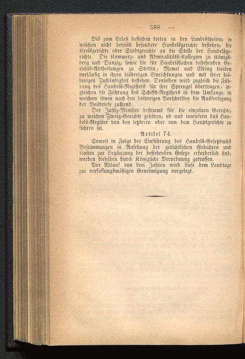 Soweit in Folge der Einführung des Handcls-GcsetzbuchsBestimmungen in Ansehung der gerichtlichen Gebühren undKosten zur'Ergänzung der bestehenden Gesetze erforderlich sind,werden dieselben durch Königliche Verordnung getroffen.