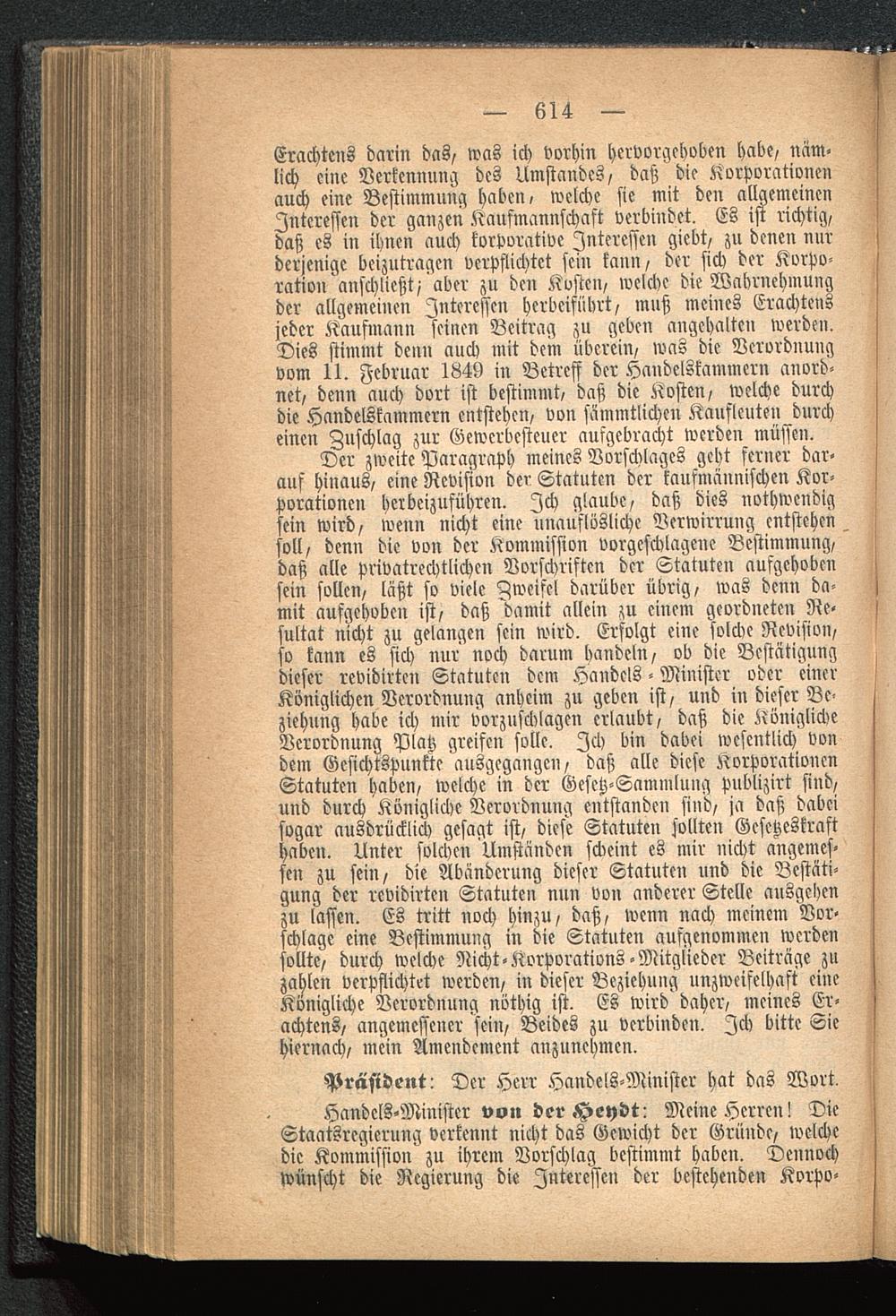 Handels-Minister von der Heydt Meine Herren! DieStaatsregicrung verkennt nicht das Gewicht der Gründe, welchedie Kommission zu ihrem Vorschlag bestimmt haben. Dennochwünscht die Regierung die Interessen der bestehenden Korpo-