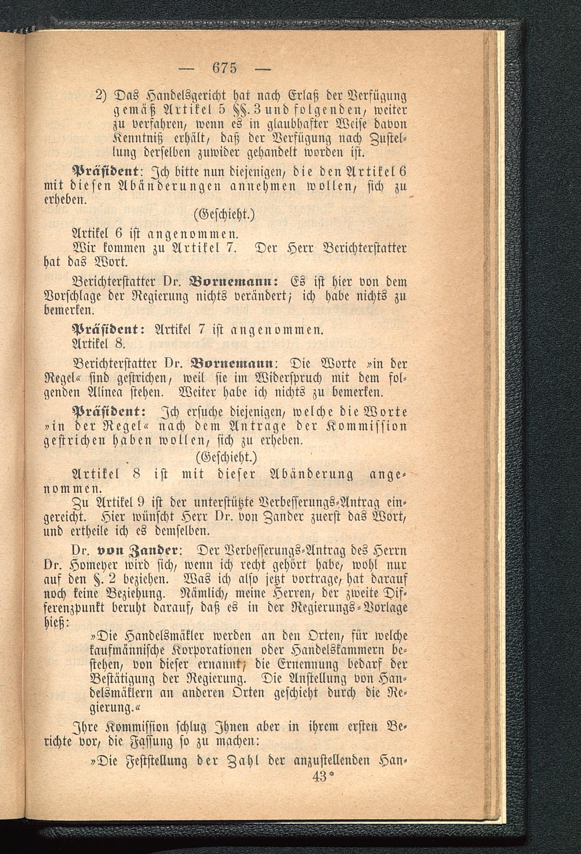vo. von Zander: Der Verbesserungs-Antrag des HerrnDr. Homeyer wird sich/ wenn ich recht gehört habe/ wohl nurauf den §. 2 beziehen. Was ich also jetzt vortrage, hat daraufnoch keine Beziehung. Nämlich/ meine Herren/ der zweite Dif-ferenzpunkt beruht darauf, daß es in der Regierungs-Vorlagehieß:
