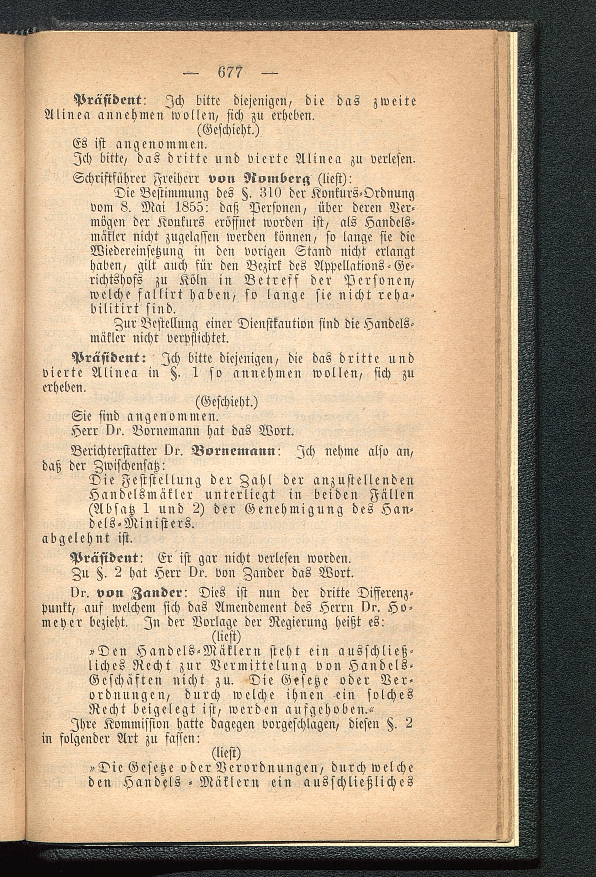 Dr. von Zander: Dies ist nun der dritte Differenz-Pu nkt, auf welchem sich das Amendement des Herrn Dr. Ho-meyer bezieht. In der Vorlage der Regierung heißt es: