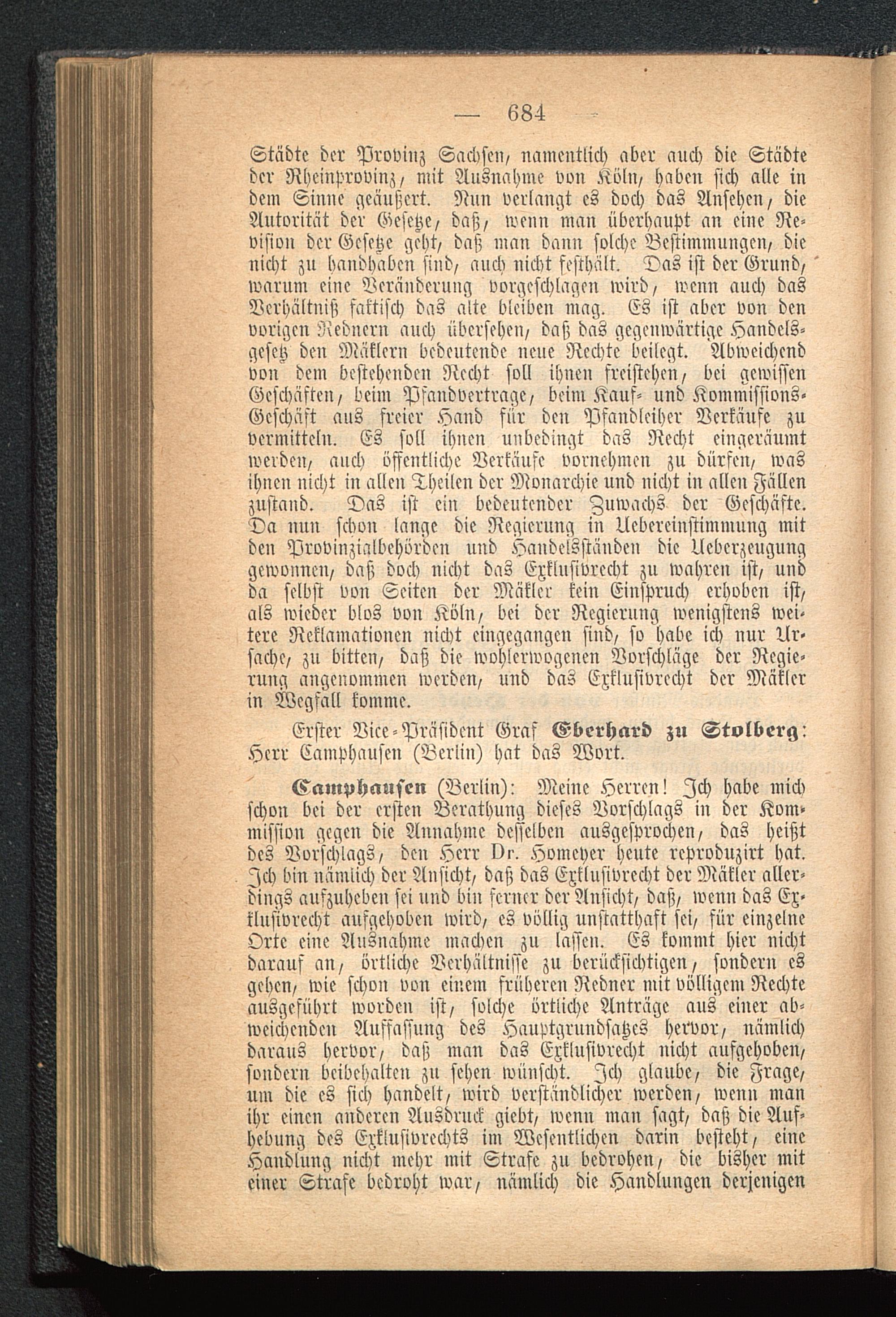 Erster Vice-Präsident Gras Eberhard zu Stolberg iHerr Camphausen (Berlin) hat das Wort.