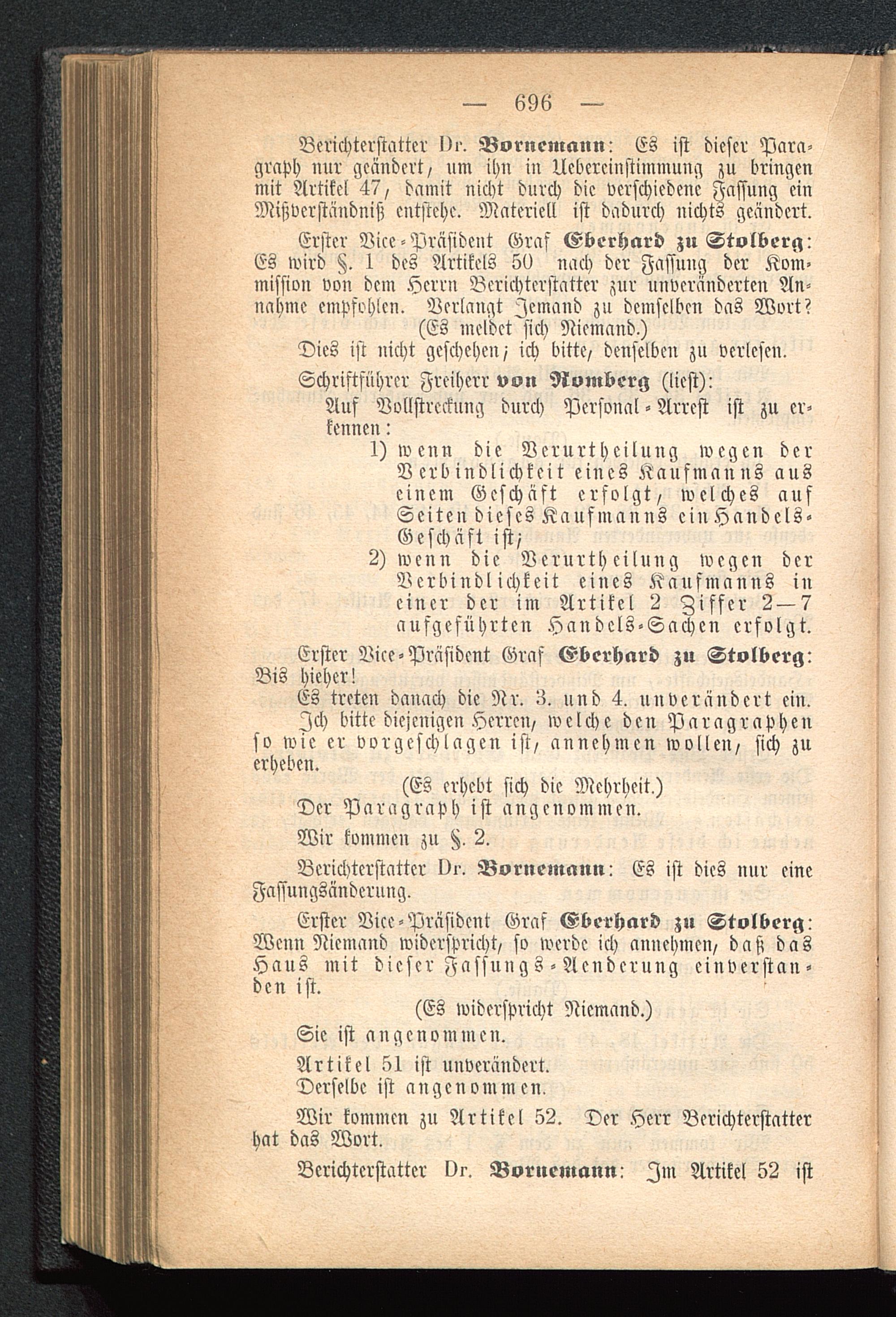 Erster Vice-Präsident Graf Eberhard zu Stolberg :W enn Niemand widerspricht, so werde ich annehmen, daß dasHaus mit dieser Fassungs - Aenderung einverstan-den ist.