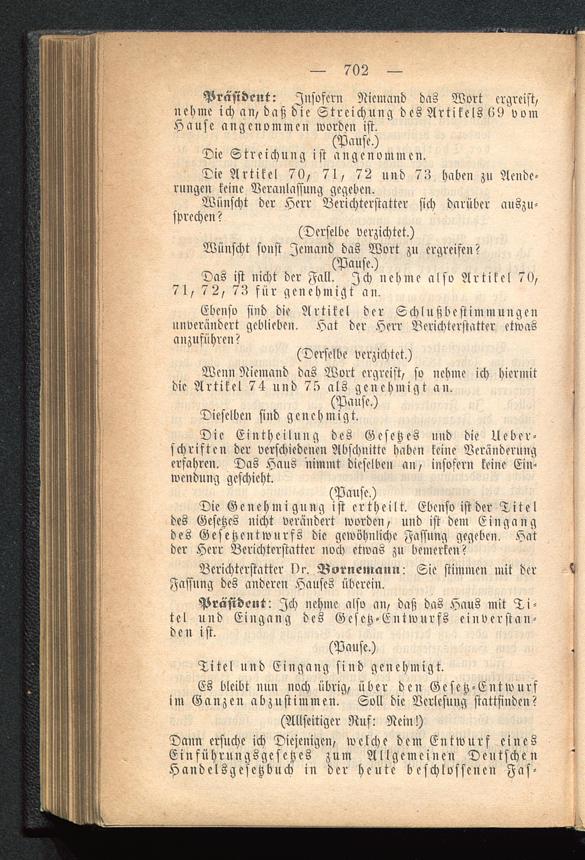 Da» ist nicht der Fall. Ich nehme also Artikel 70,7k, 72, 73 für genehmigt an.