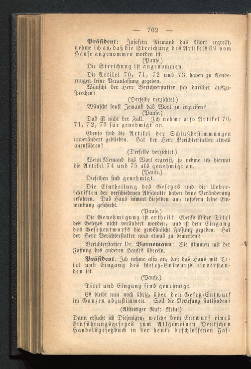 Wenn Niemand das Wort ergreift, so nehme ich hiermitdie Artikel 74 und 75, als genehmigt an.
