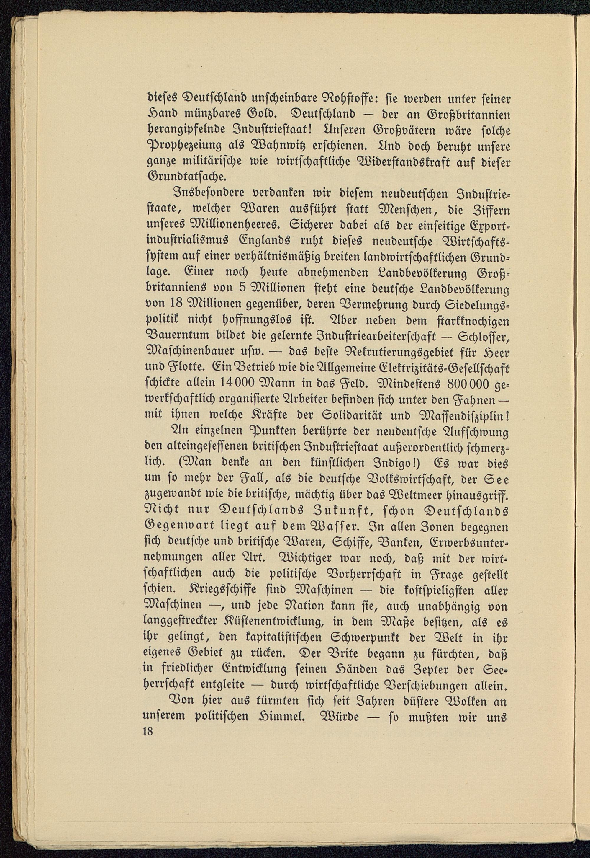 dieses Deutschland unscheinbare Rohstoffe: sie werden unter seinerÄand münzbares Gold. Deutschland — der an Großbritannien herangipfelnde Industriestaati Anseren Großvätern wäre solcheProphezeiung als Wahnwitz erschienen. And doch beruht unsereganze militärische wie wirtschaftliche Widerstandskraft auf dieserGrundtatsache.
