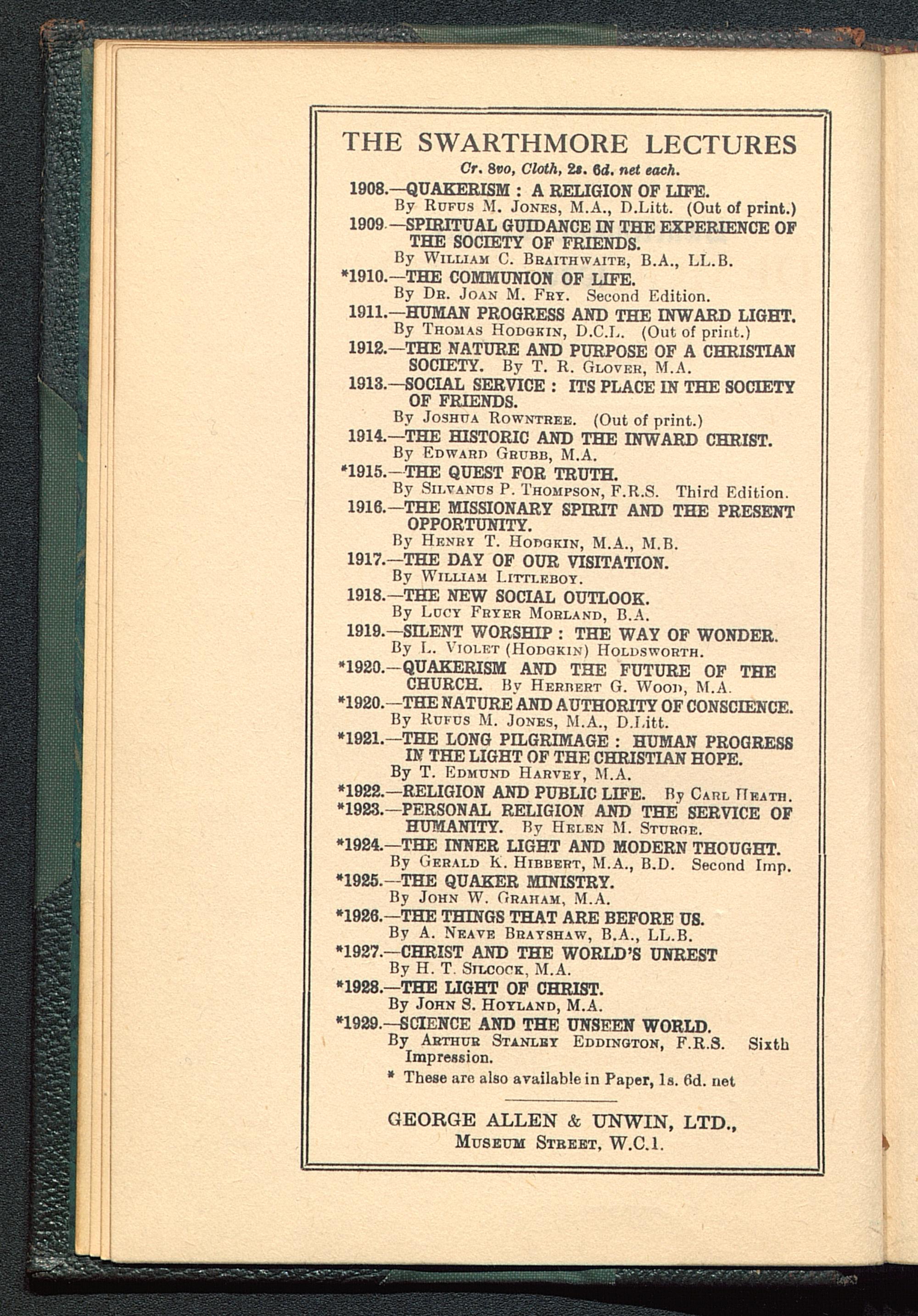 THE SWARTHMORE LECTURES