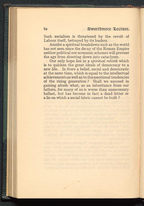 Our only hope lies in a spiritual rebirth whichis to quicken the great ideals of democracy to anew life. Is there a belief, social and democraticat the same time, which is equal to the intellectualachievements as well as to the emotional tendenciesof the rising generation ? Shall we succeed ingaining afresh what, as an inheritance from ourfathers, for many of us is worse than unnecessaryballast, but has become in fact a dead letter ora lie on which a social fabric cannot be built ?