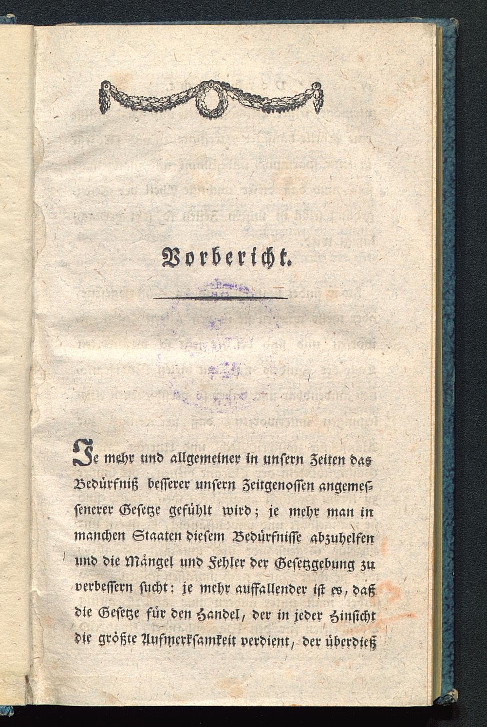 mchx und allgemeinex in unsern Zeiten dasBedürfniß besserer unsern Zeitgenossen angeniestsenerer Gesetze gefühlt wird; je mehr man inmanchen Staaten diesem Bedürfnisse abzuhelfen^ und die Mangel und Fehler der Gesetzgebung zuverbessern sucht; je mehr auffallender ist es, daßdie Gesetze für den Handel, der in jeder Hinsichtdie größte Aufmerksamkeit verdient, der überdieß