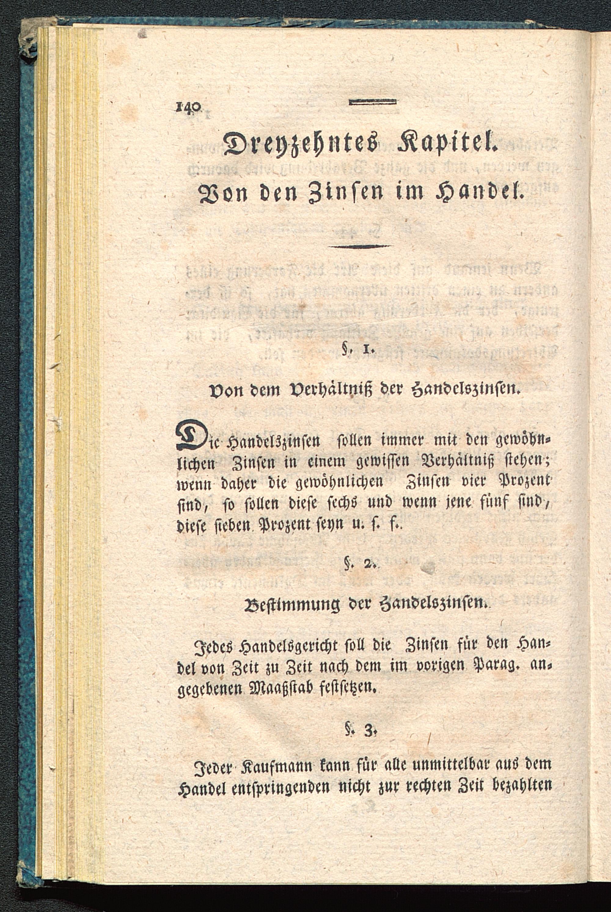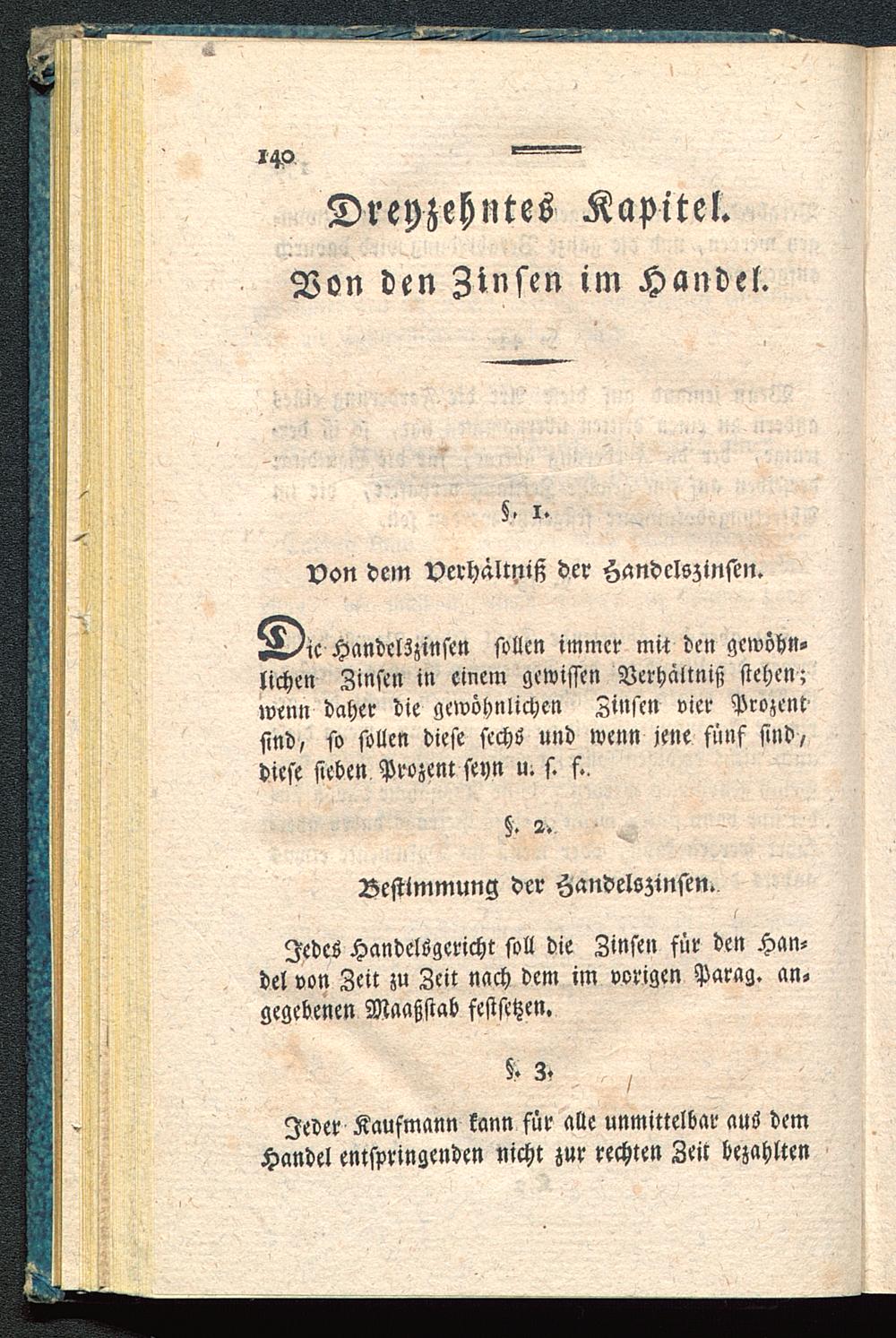 ^ic Handelszinsen sollen immer mit den gewöhn-lichen Zinsen in einem gewissen Verhältniß stehen ;wenn daher die gewöhnlichen Zinsen vier Prozent-sind, so sollen diese sechs und wenn jene fünf sind,diese sieben Prozent seyn m s. f..