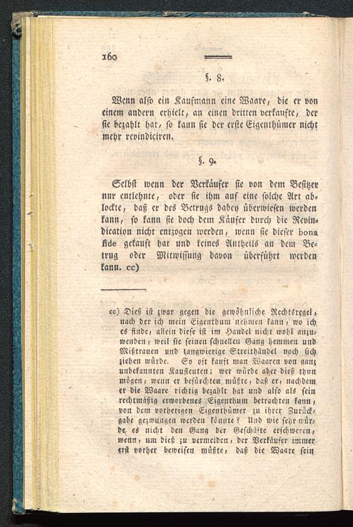 Wenn also ein Kaufmann eine Waare, die er voneinem andern erhielt, an einen dritten verkaufte, dersie bezahlt hat, so kann sie der erste Eigenthümer nichtmehr reviydiciren.