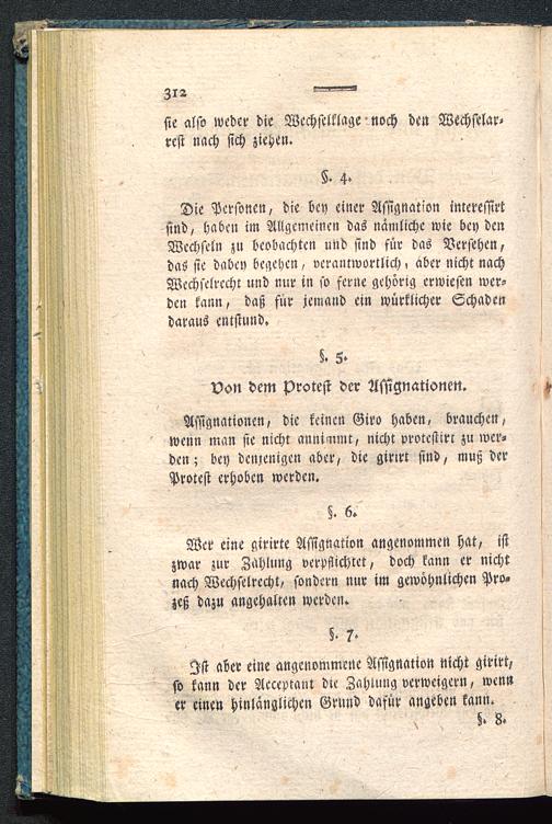 Die Personen, die bey einer Assignation interessirtsind, haben im Allgemeinen das nämliche wie bey denWechseln zu beobachten und sind für das Versehen,das sie daben begehen, verantwortlich, aber nicht nachWechselrccht und nur in so ferne gehörig erwiesen wer-den kann, daß für jemand ein würklicher Schadendaraus entstund.
