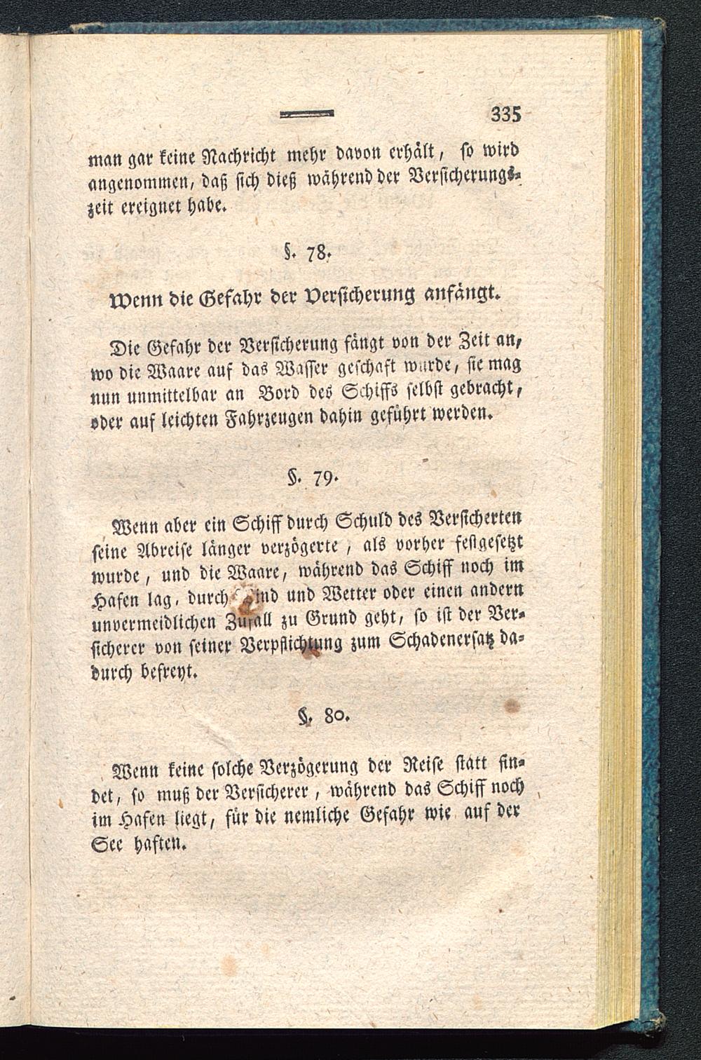 Wenn keine solche Verzögerung der Reife statt fin-det, so muß der Versicherer, während das Schiff nochim Hafen liegt, für die nemliche Gefahr wie auf derSee haften.
