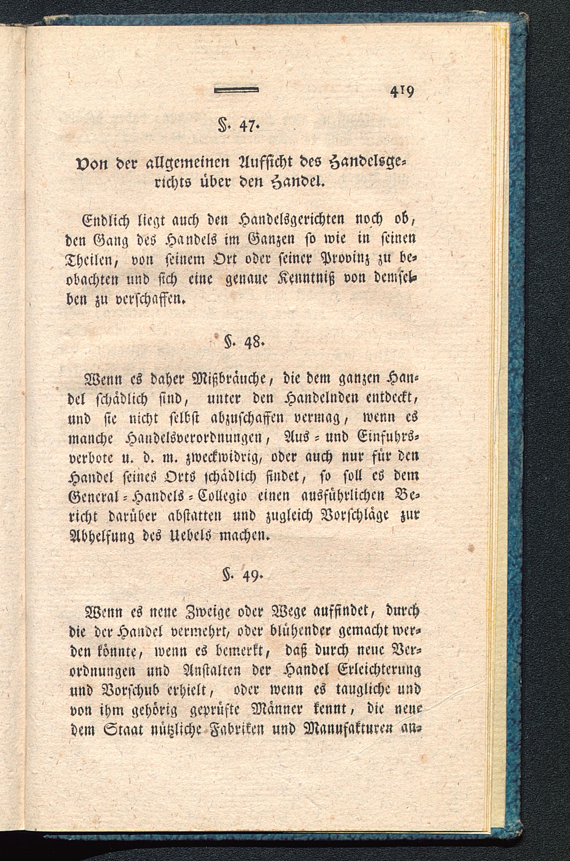 Endlich liegt auch den Handelsgerichten noch ob/den Gang des Handels im Ganzen so wie in seinenTheilen, von seinem Ort oder seiner Provinz zu be-obachten und sich eine genaue Kenntniß von demsel-ben zu verschaffen.