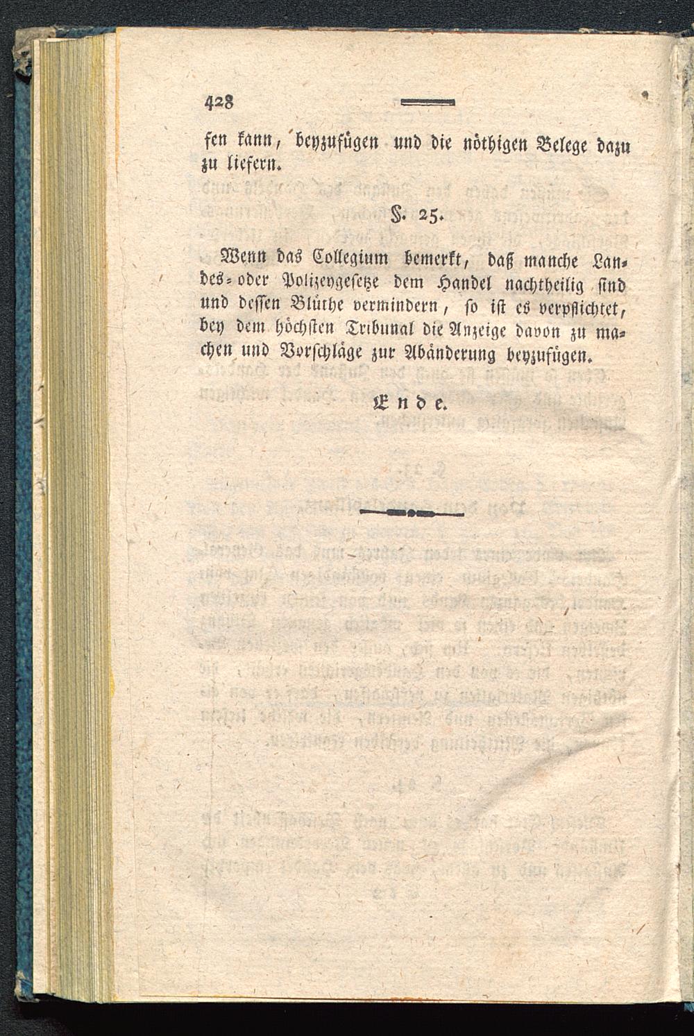Wenn das Collegium bemerkt, dass manche Lan-des-oder Poli.zeygesetze dem Handel nachtheilig sindund dessen Blüthe vermindern, so isi es verpflichtet,bey dem höchsten Tribunal die Anzeige davon zu ma-chen und Vorschläge zur Abänderung beyzufügen.