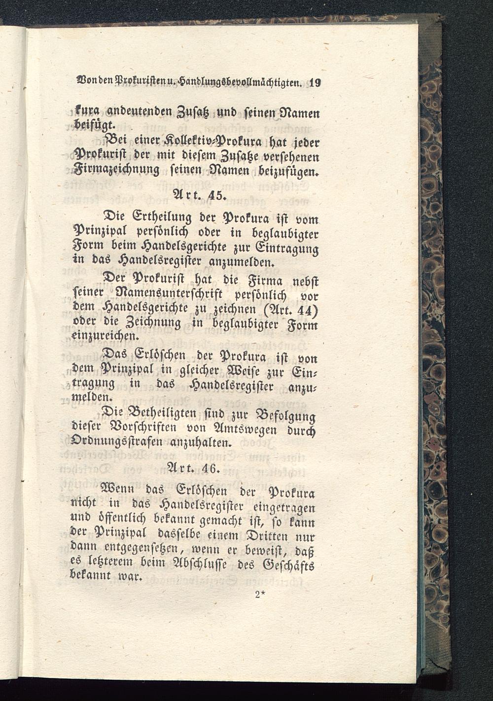 Die Ertheilung der Prokura ist vomPrinzipal persönlich oder in beglaubigterForm beim Handelsgerichte zur Eintragungin das Handelsregister anzumelden.