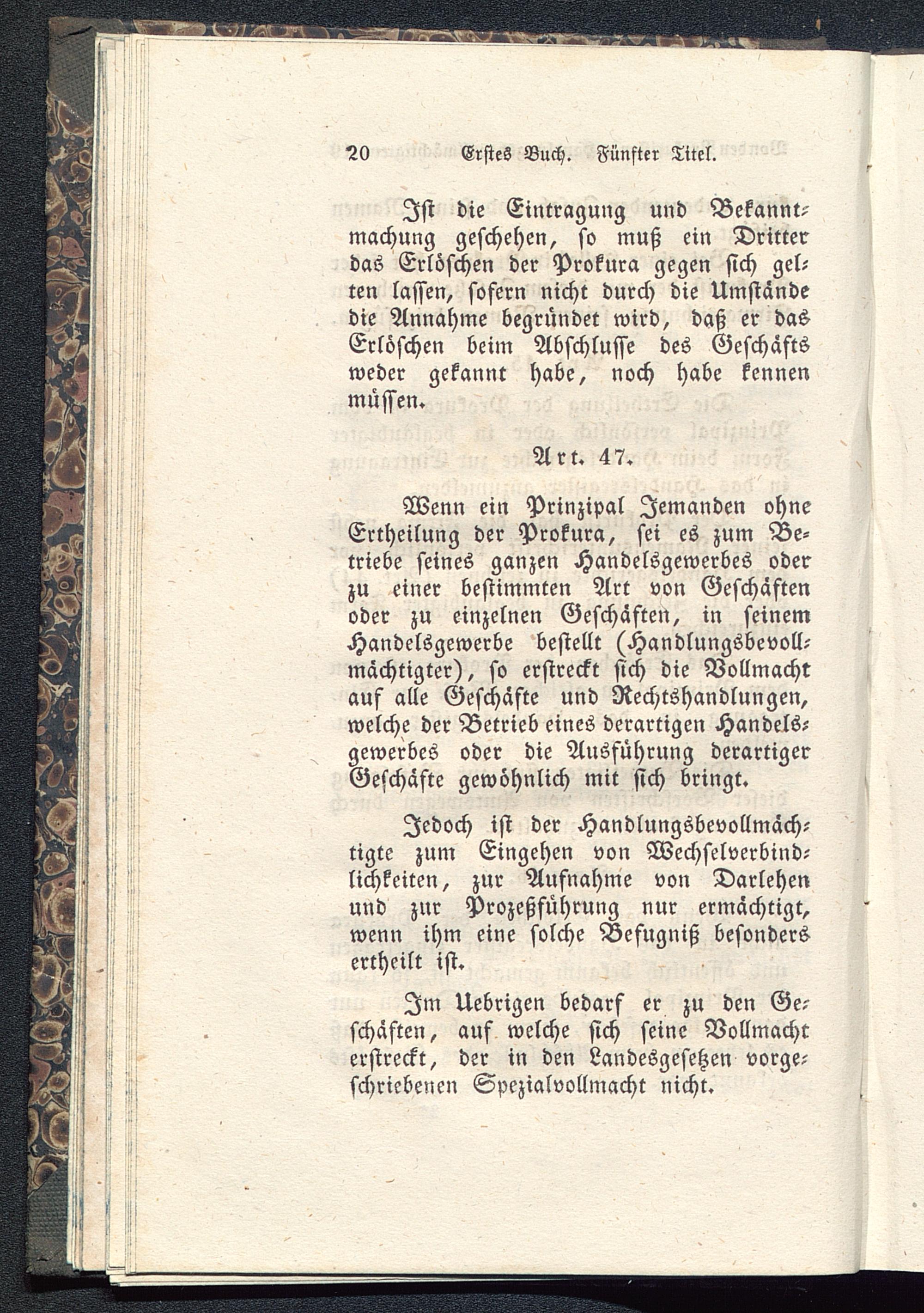 Wenn ein Prinzipal Jemanden ohneErtheilung der Prokura, sei es zum Be-triebe seines ganzen Handelsgewerbes oderzu einer bestimmten Art von Geschäftenoder zu einzelnen Geschäften, in seinemHandelsgewerbe bestellt (Handlungsbevoll-mächtigter), so erstreckt sich die Vollmachtauf alle Geschäfte und Rechtshandlungen,welche der Betrieb eines derartigen Handels-gewerbes oder die Ausführung derartigerGeschäfte gewöhnlich mit sich bringt.